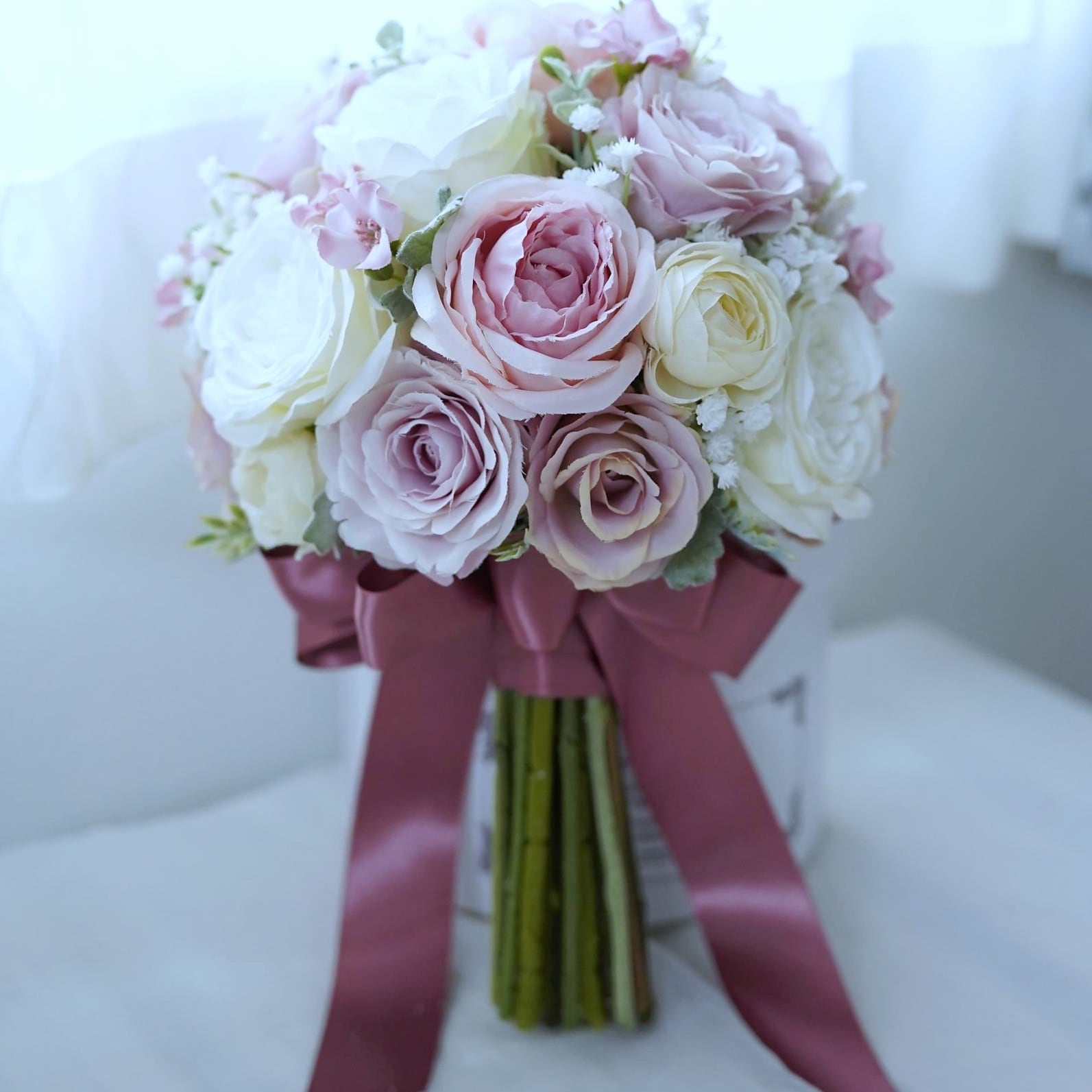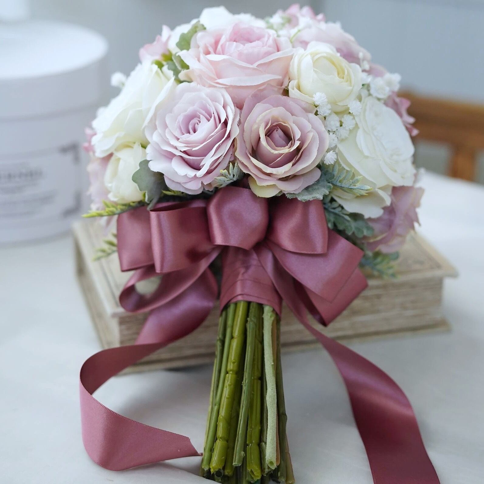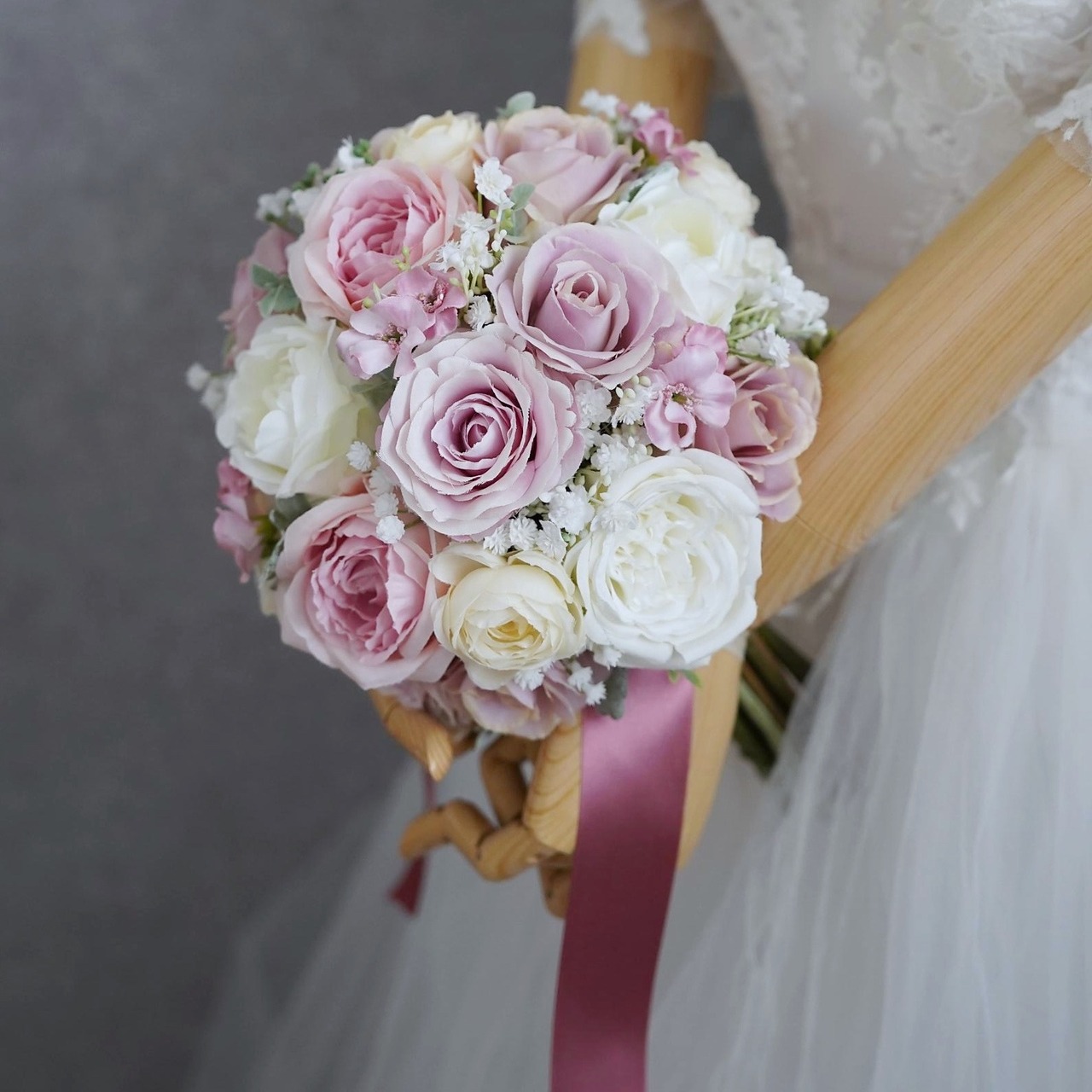 高品質のアーティフィシャルフラワーで束ねたウェディングブーケです。