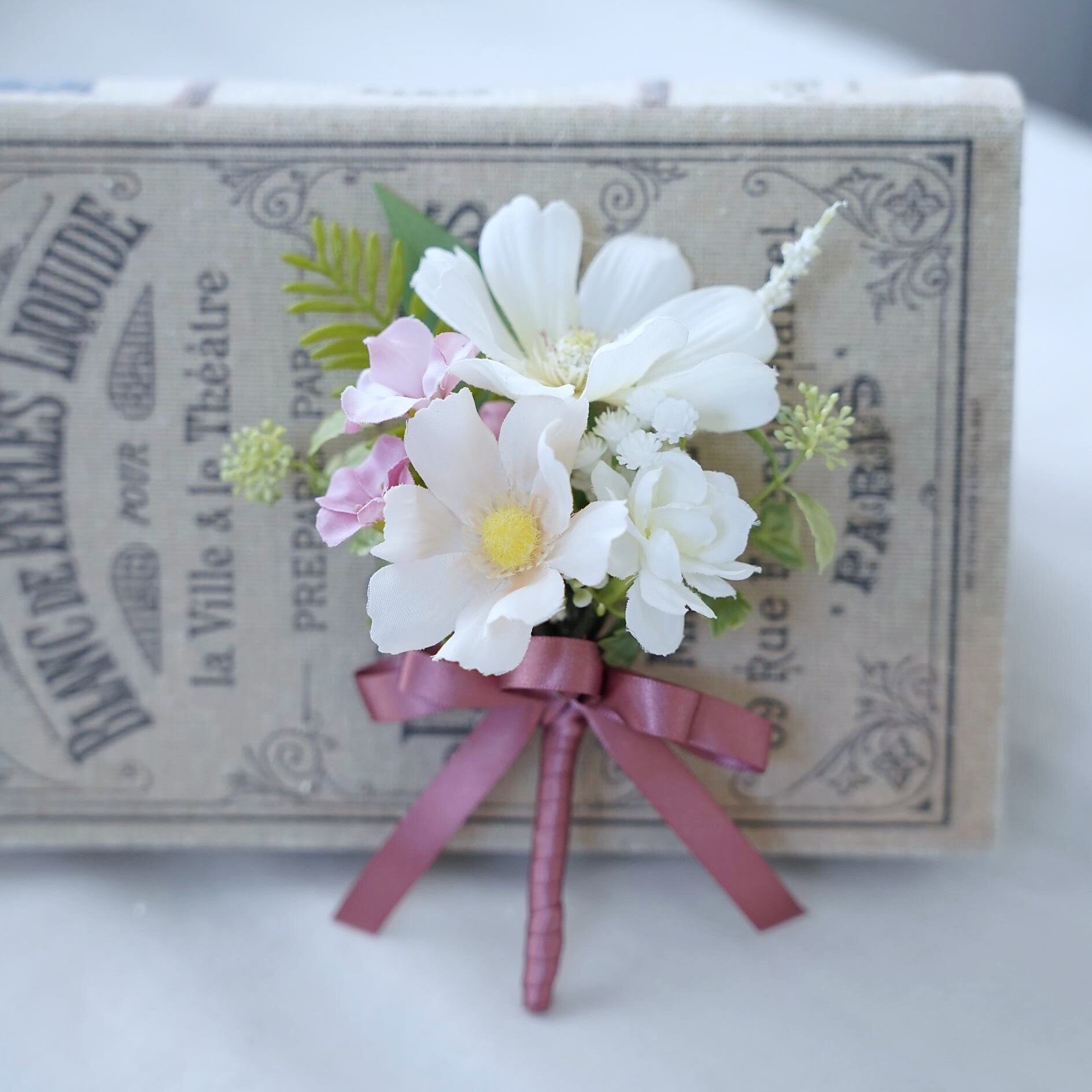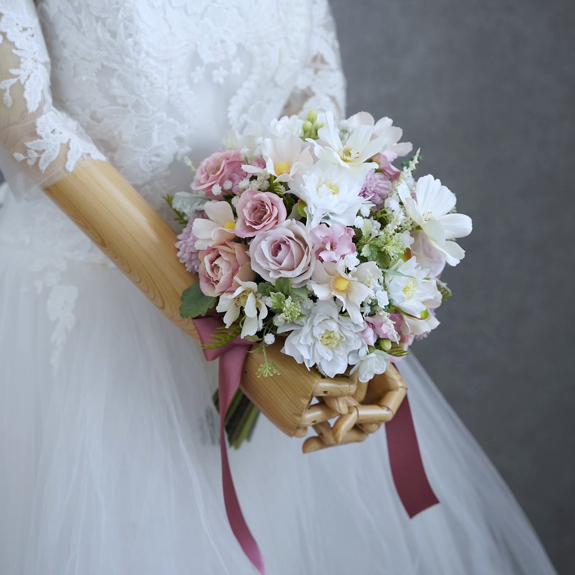 ピンクはくすみピンクや淡いピンクのお花を使っております。