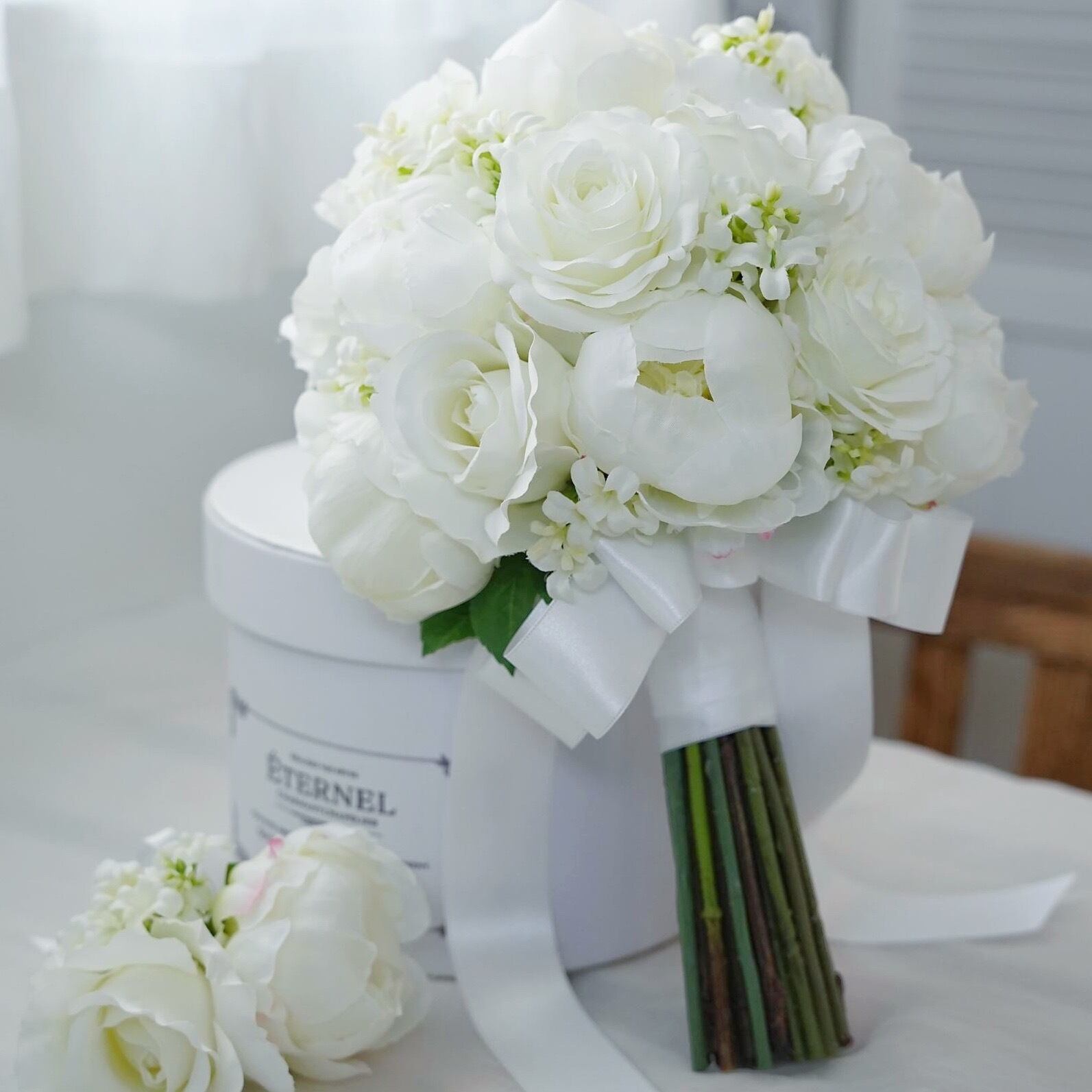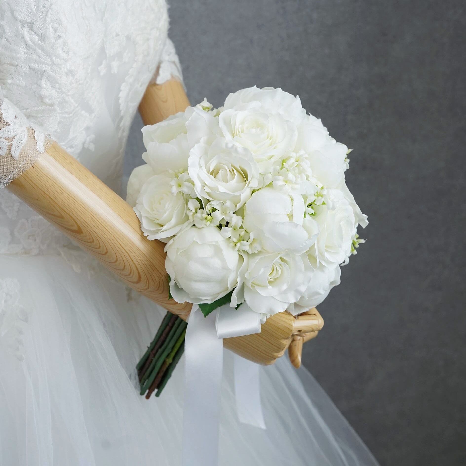高品質のアーティフィシャルフラワーで束ねたウェディングブーケです。