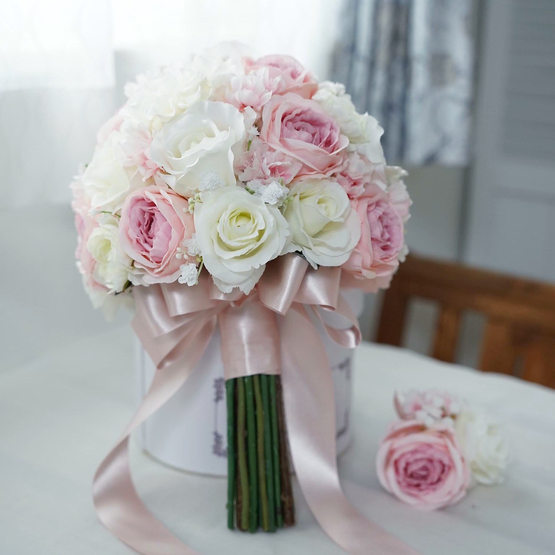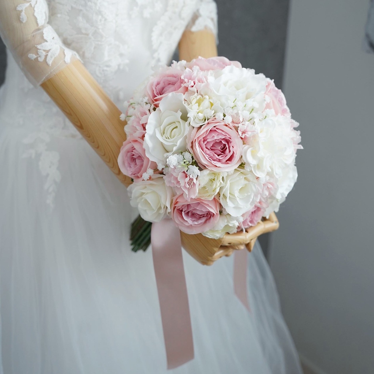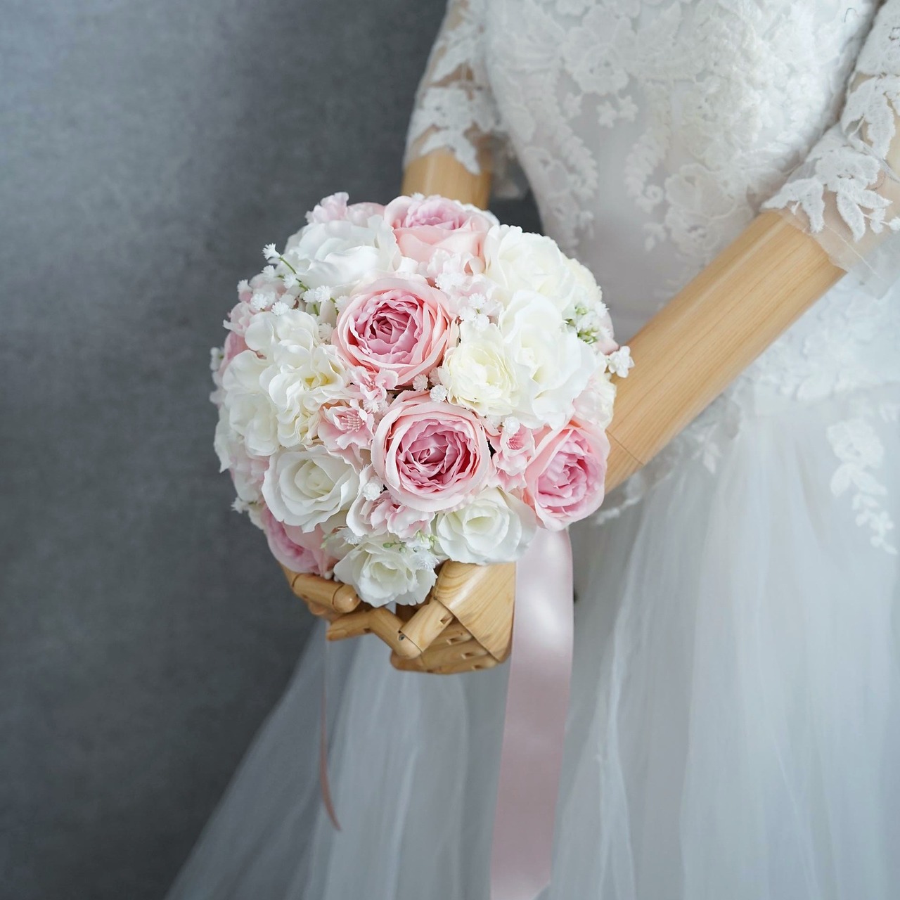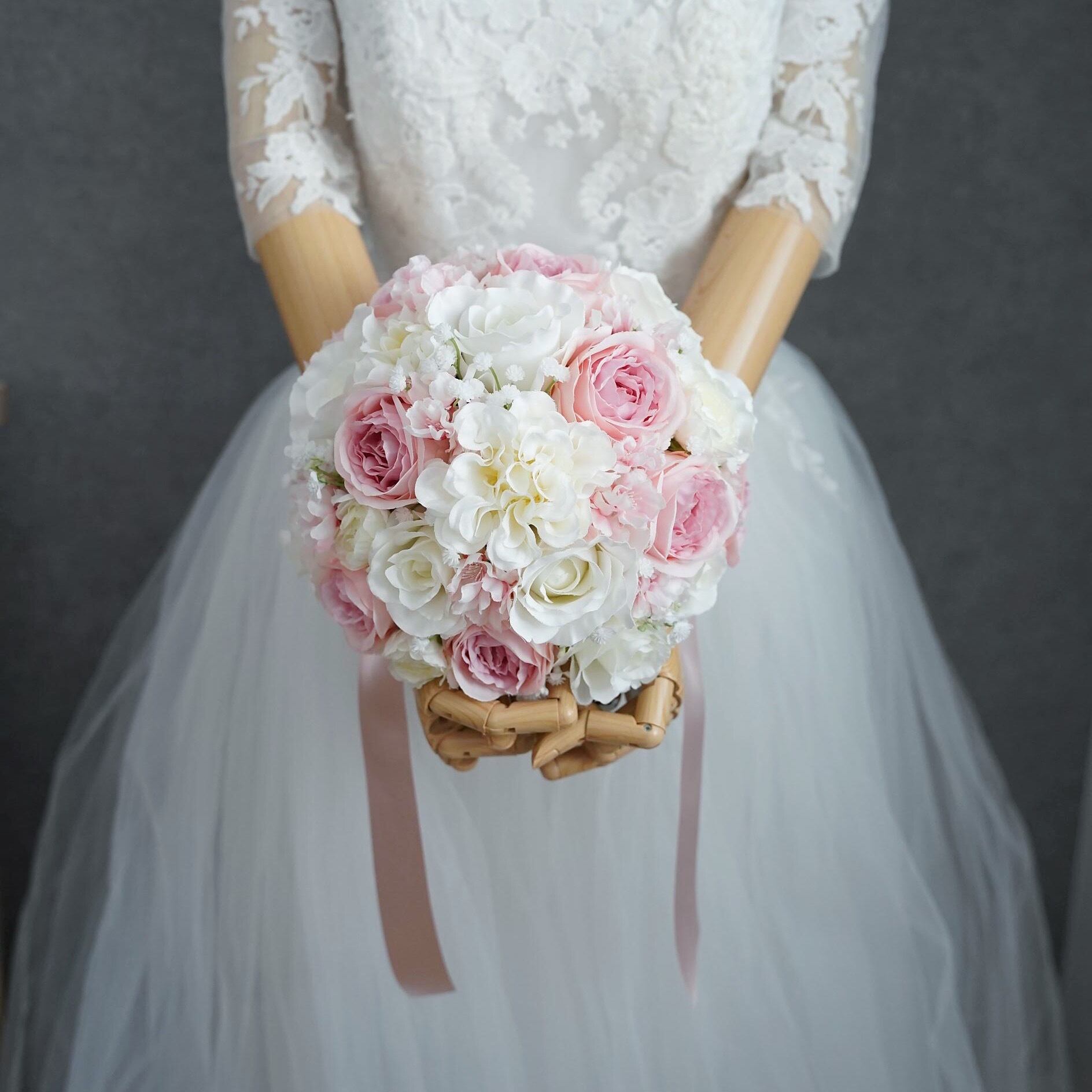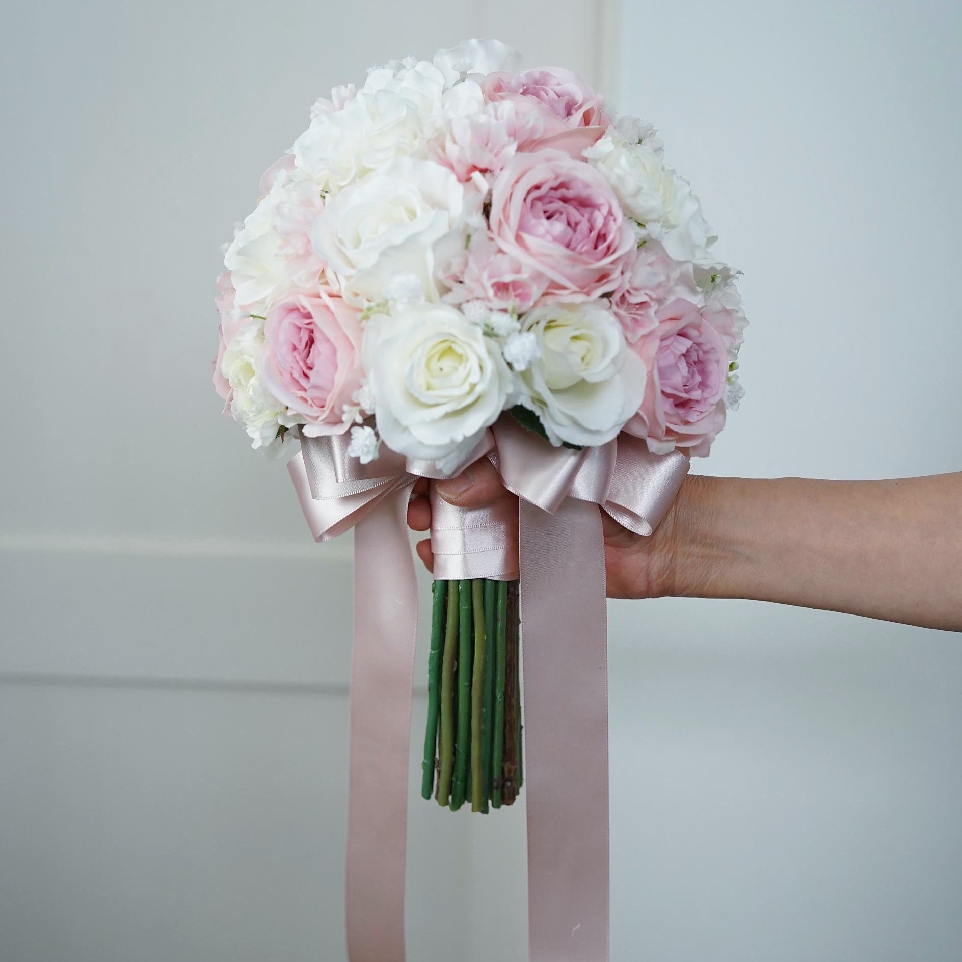高品質のアーティフィシャルフラワーで束ねたウェディングブーケです。