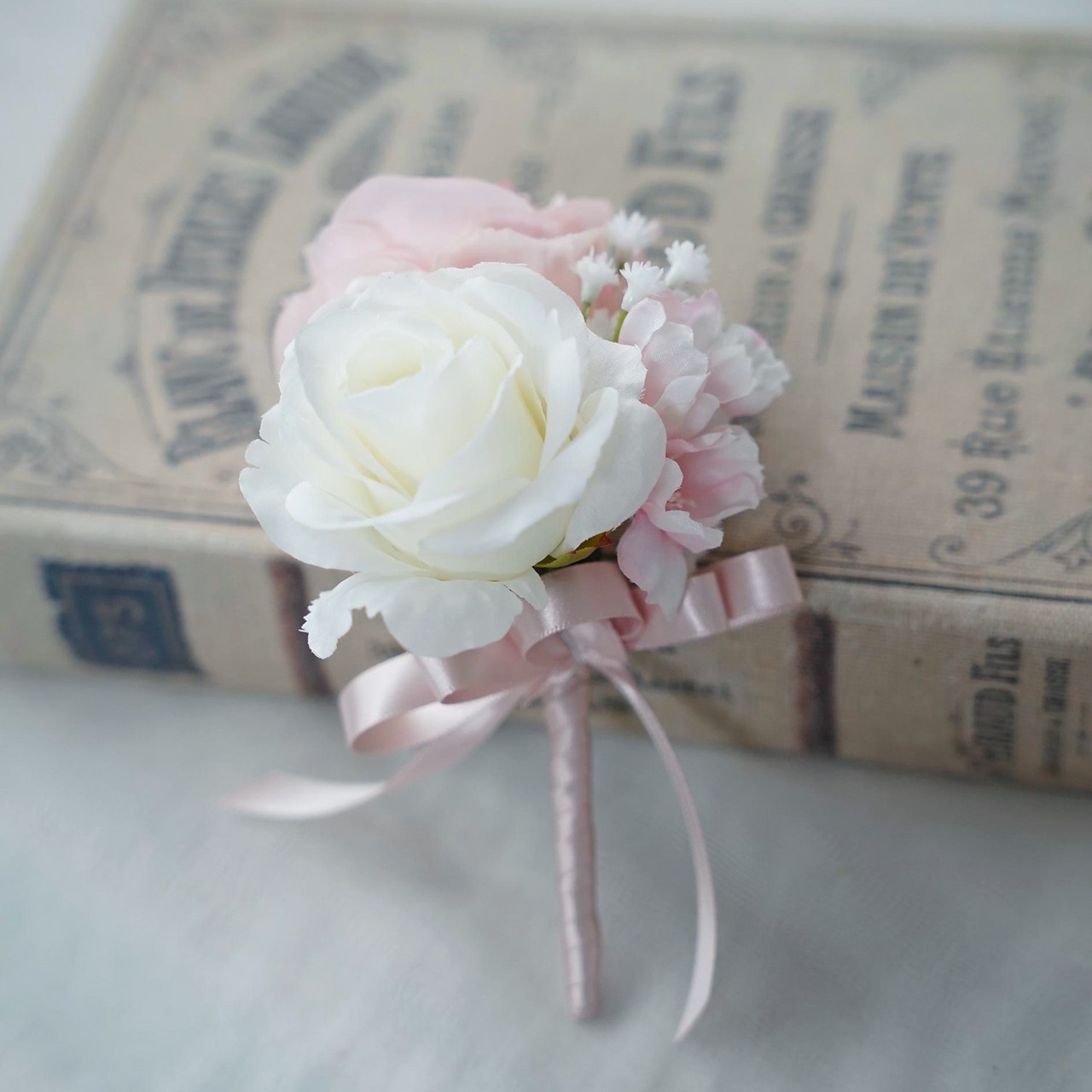 リボンは淡いピンク色のサテンリボンをお付けしています。