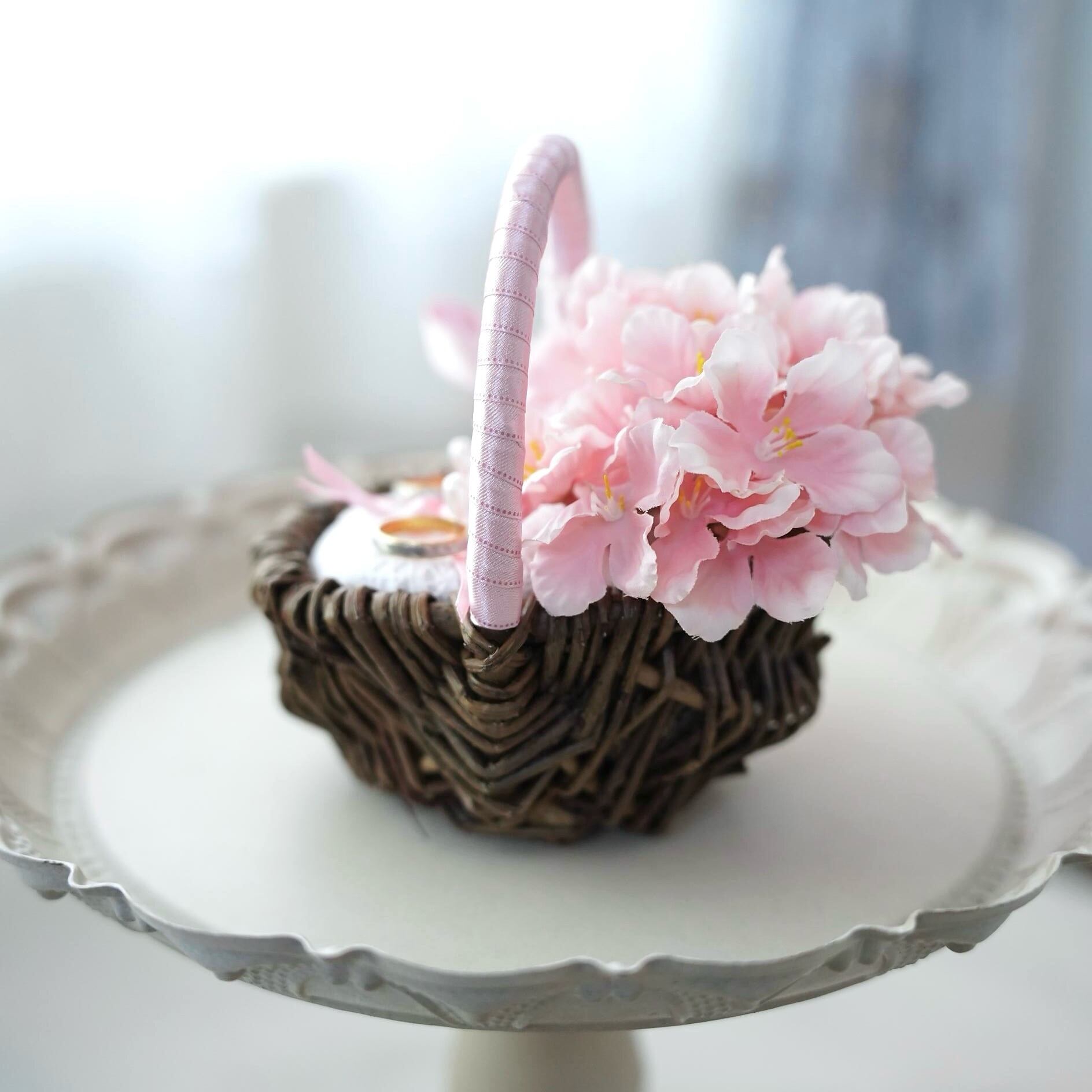 天然素材のバスケットにアーティフィシャルフラワーの桜をアレンジしました。