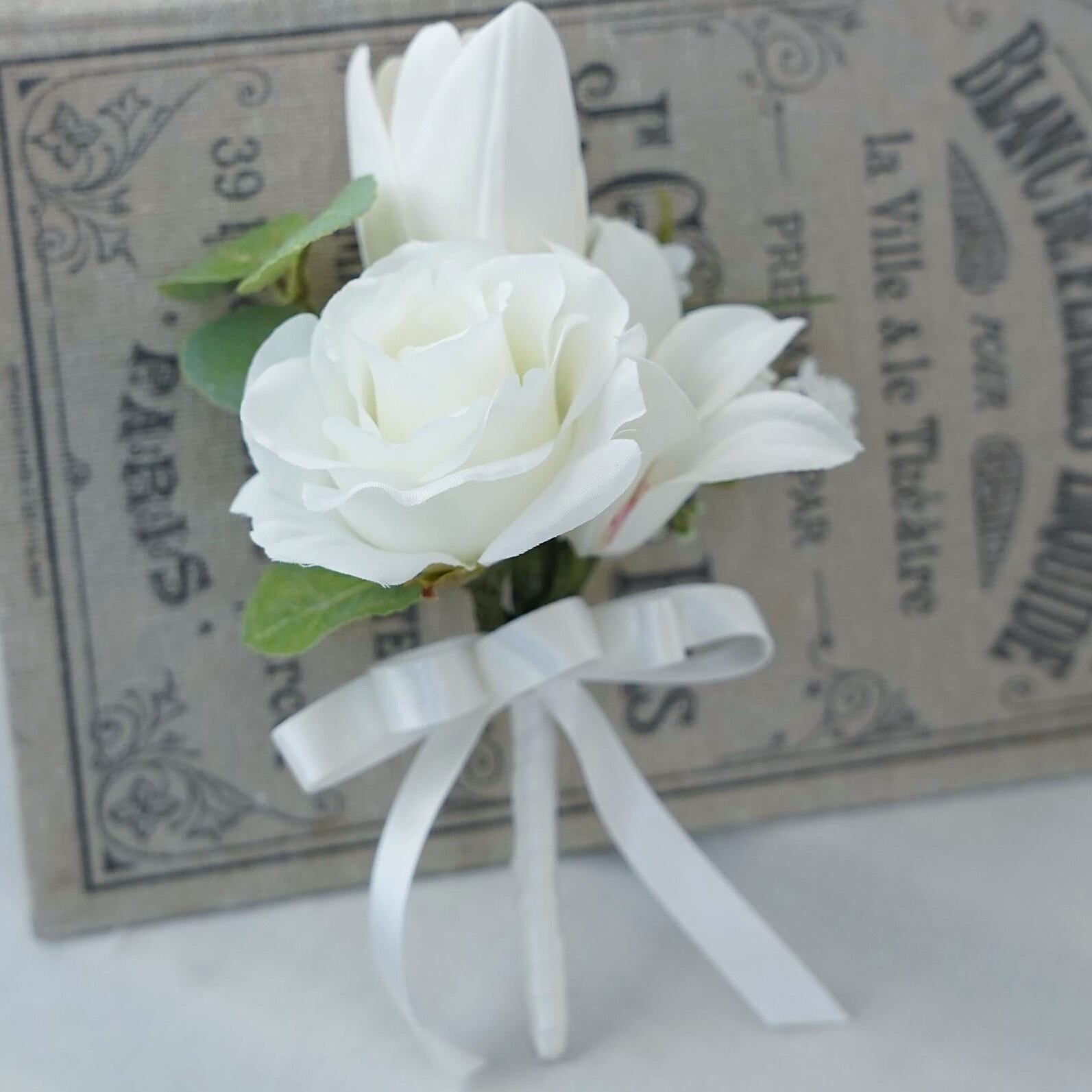 高品質のアーティフィシャルフラワーで束ねたウェディングブーケです。