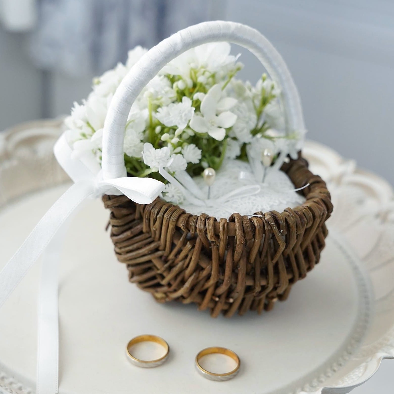 ナチュラルなバスケットのリングピローです。