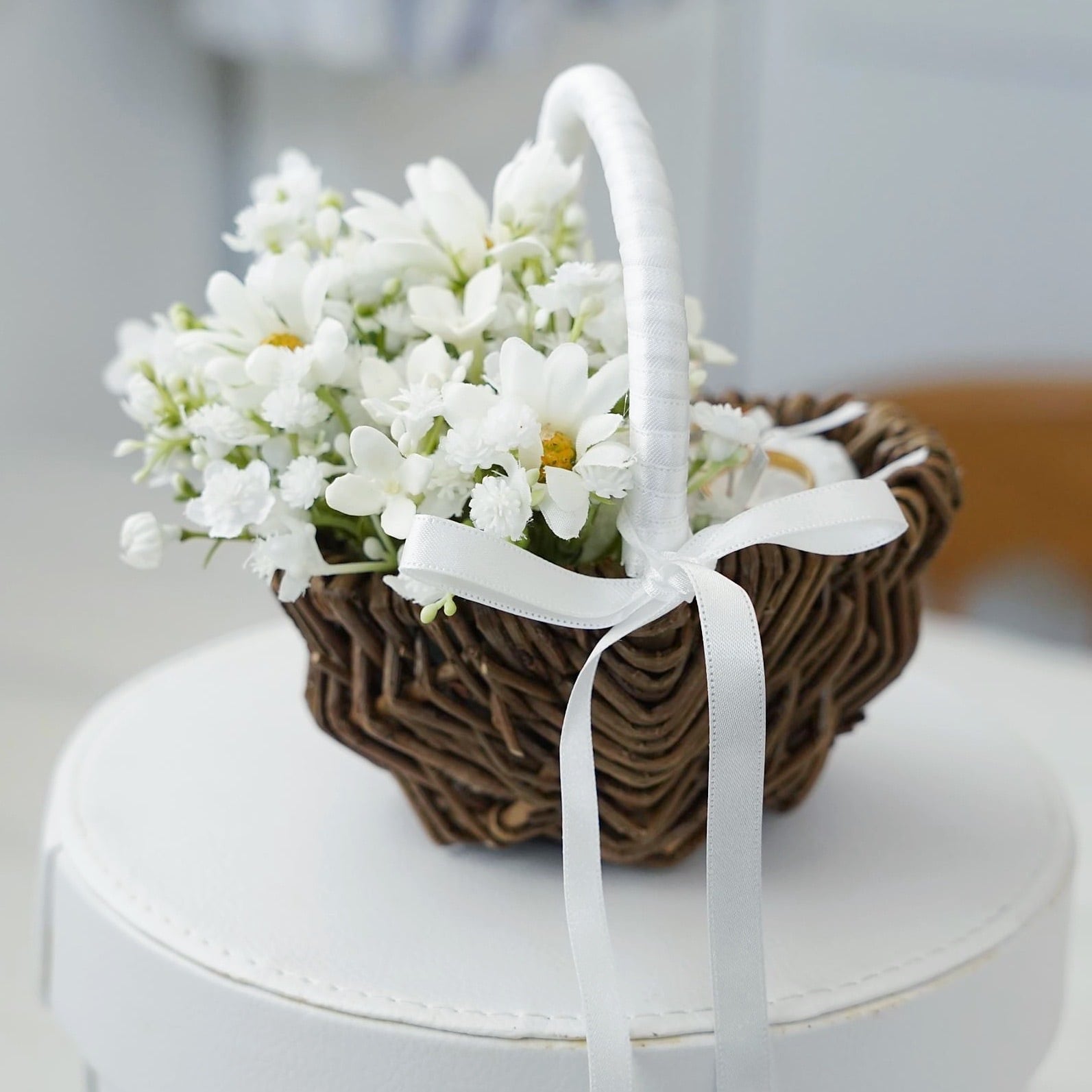 カスミソウとデージーのリングピロー