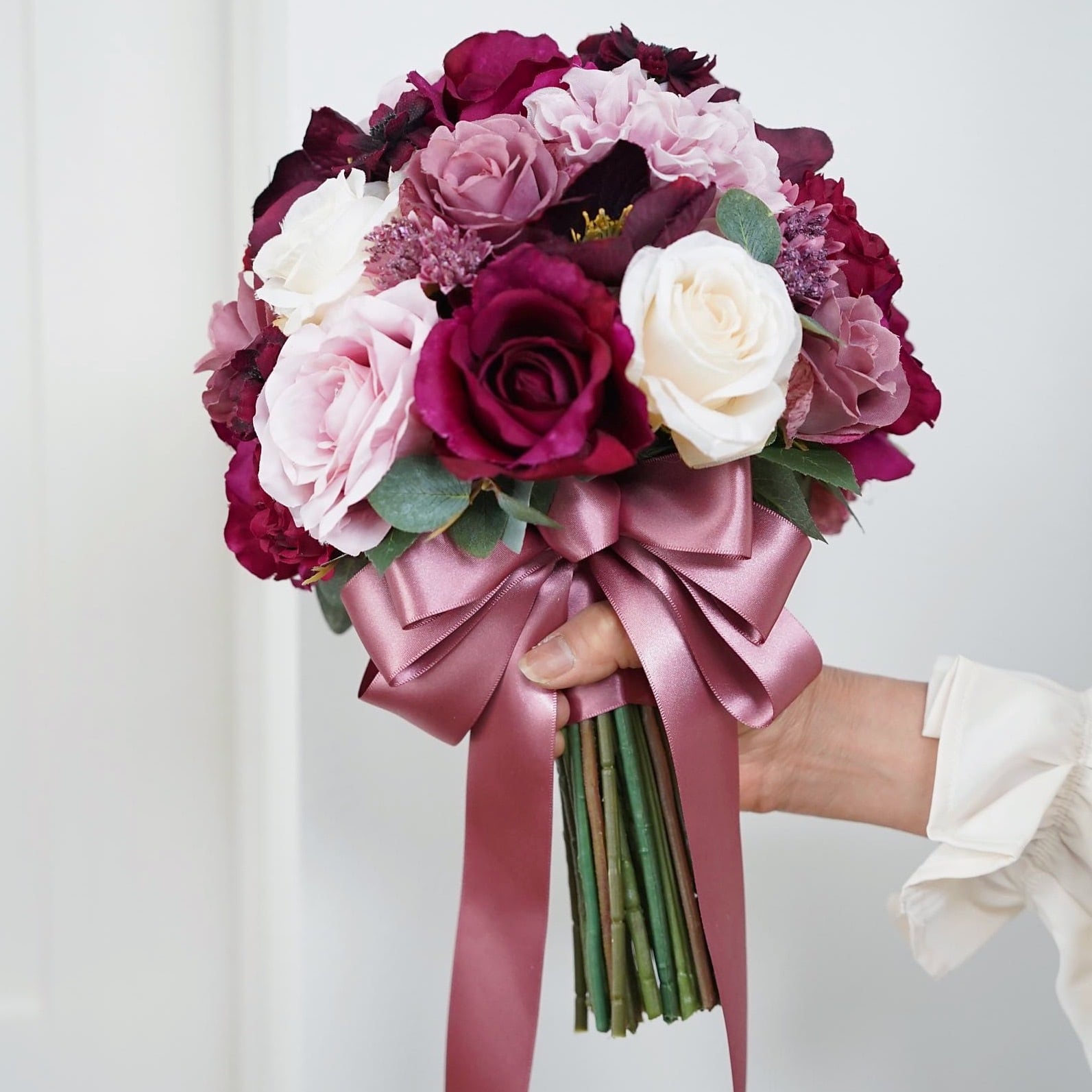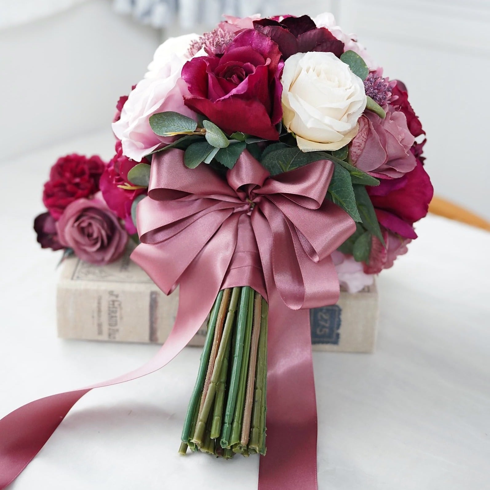 ピンクバーガンディのラウンドブーケ ウェディングブーケ