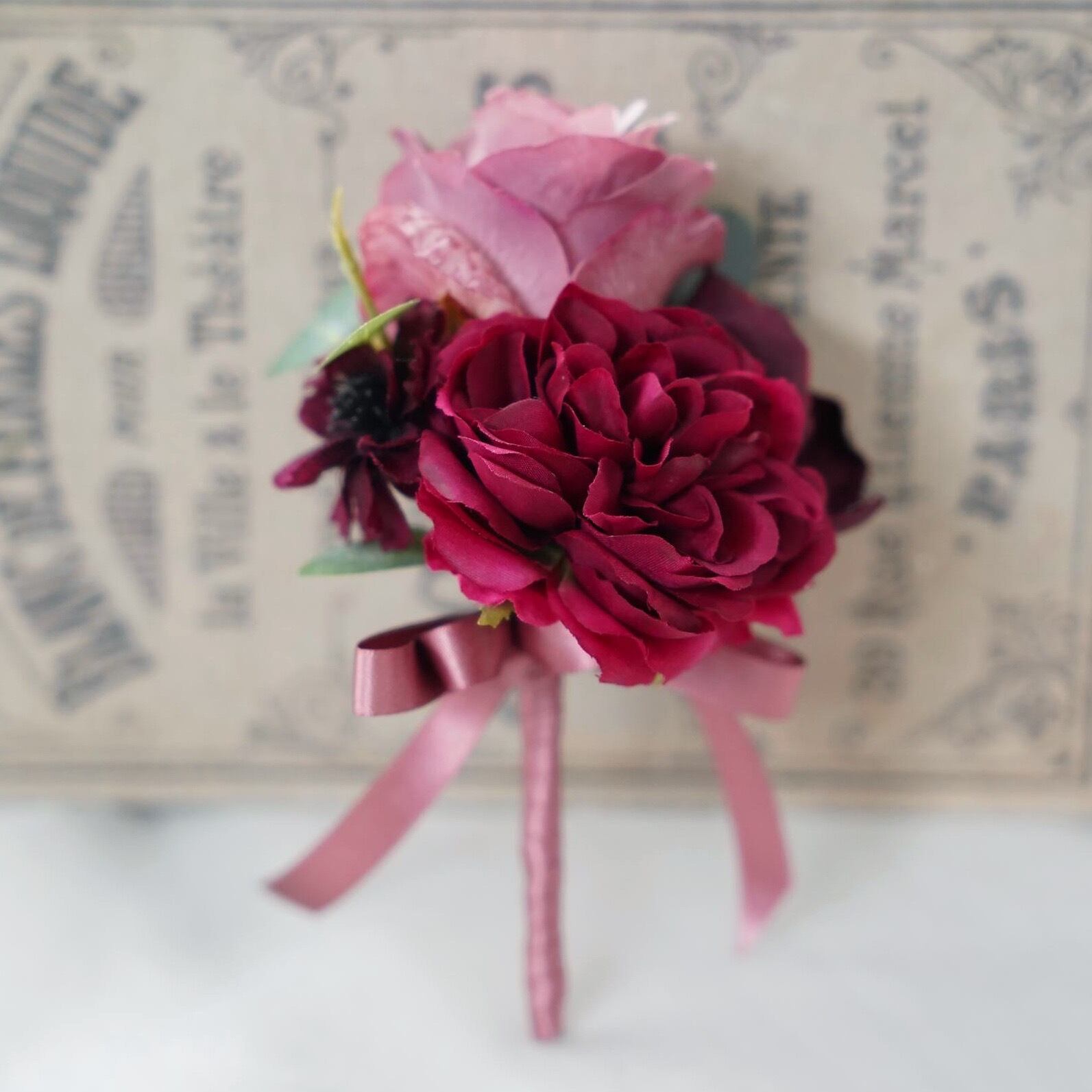 モーブピンクやバーガンディなどのシックなお色目でお作りした