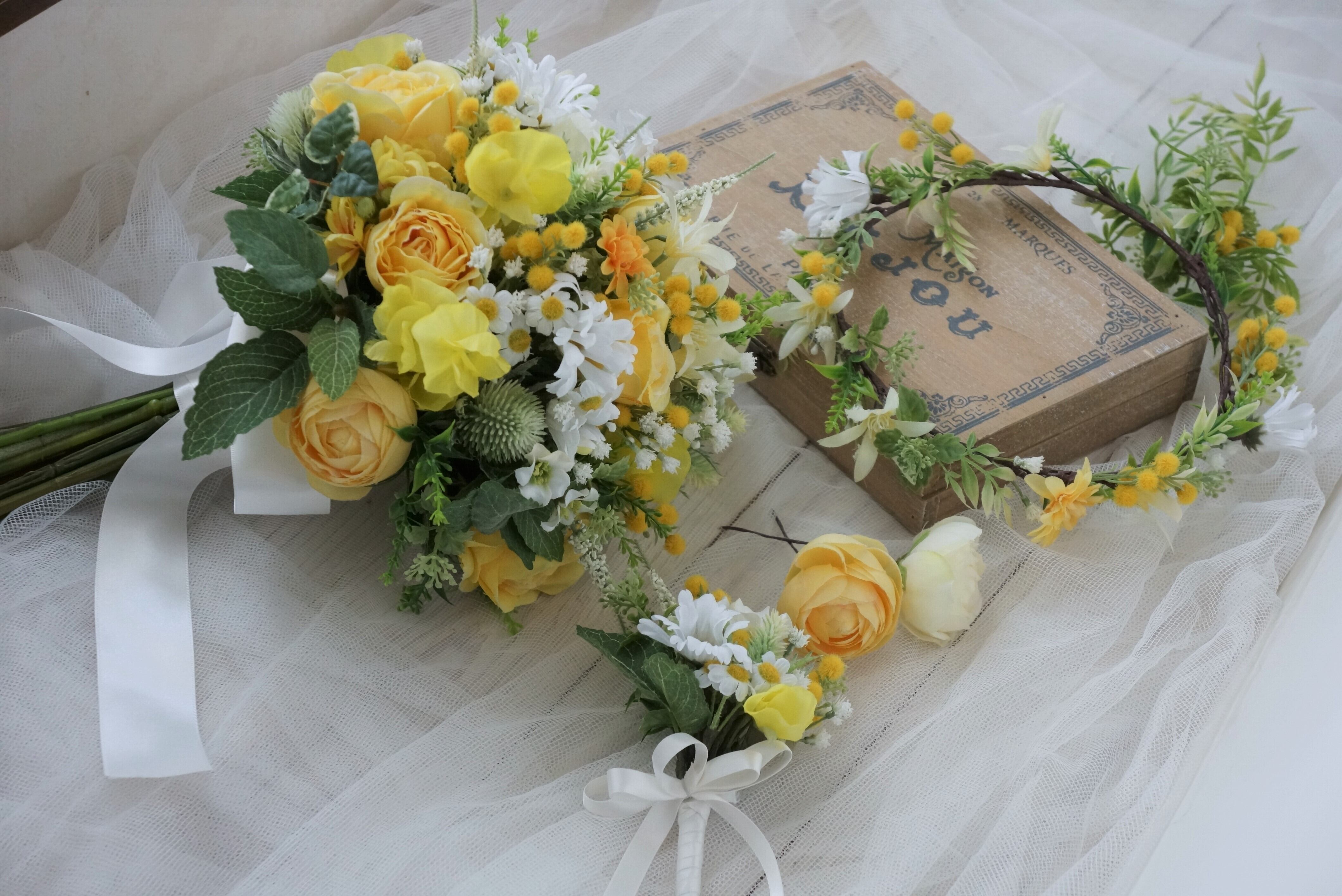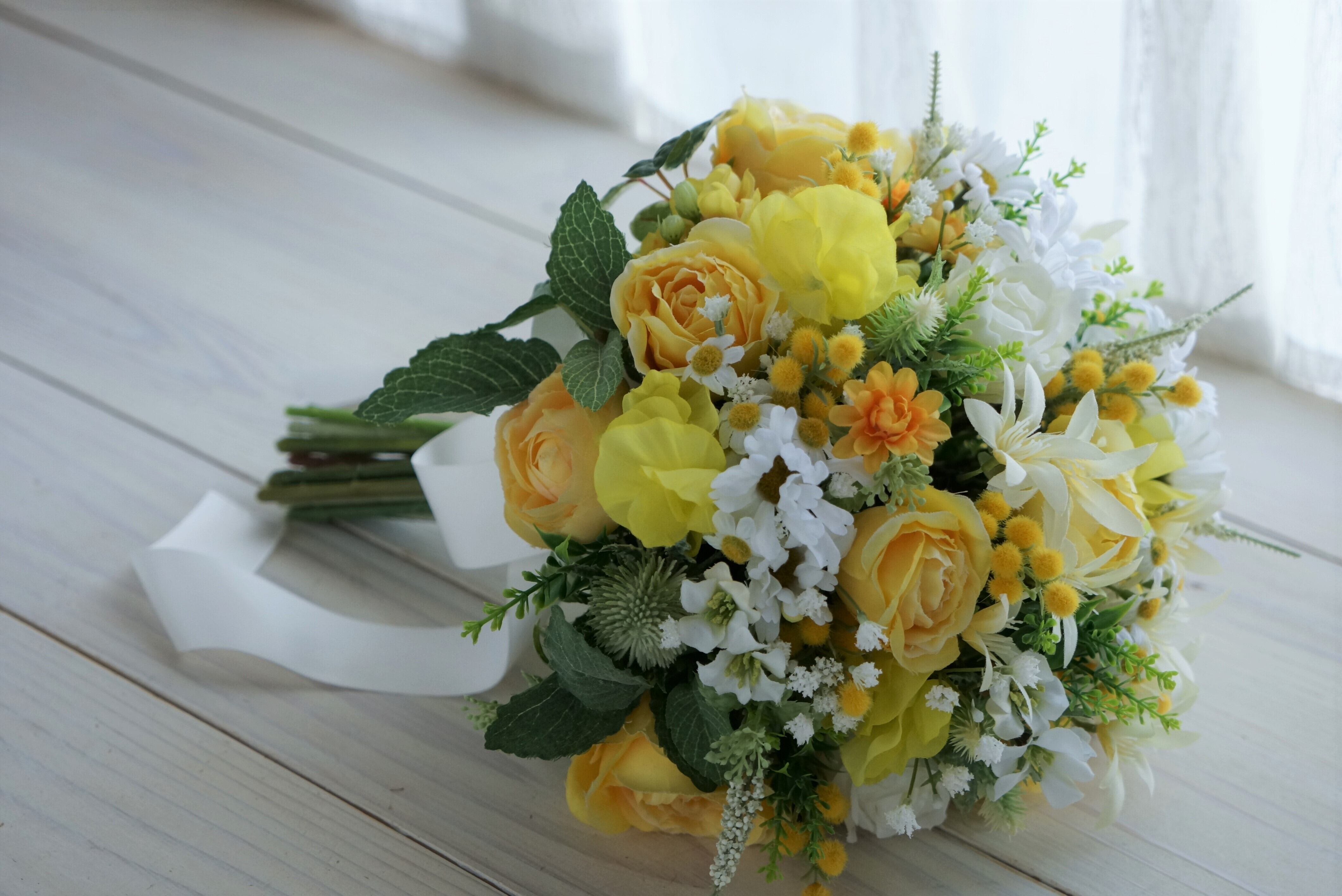 アーティフィシャルフラワーはとても丈夫ですので、前撮り・挙式・後撮りと何度でもご使用いただけます。