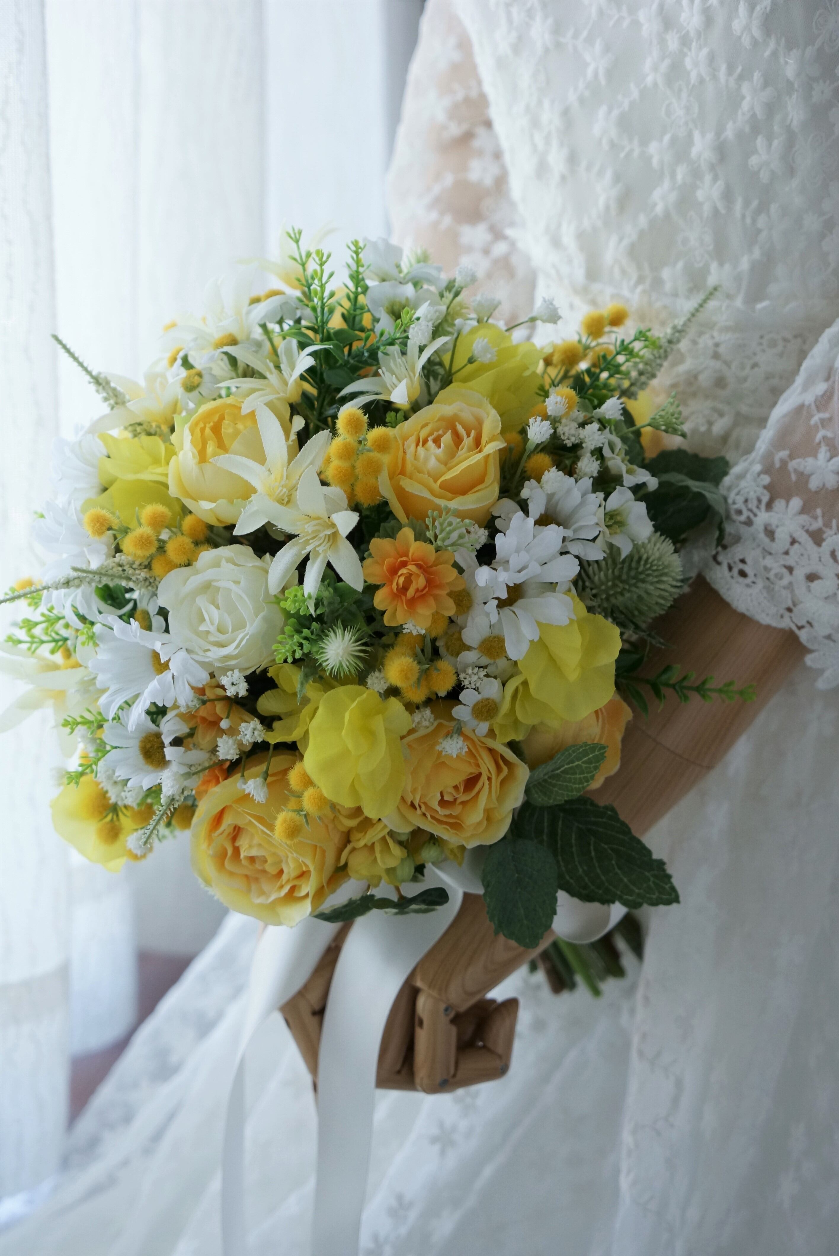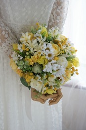 高品質のアーティフィシャルフラワーで束ねたウェディングブーケです。