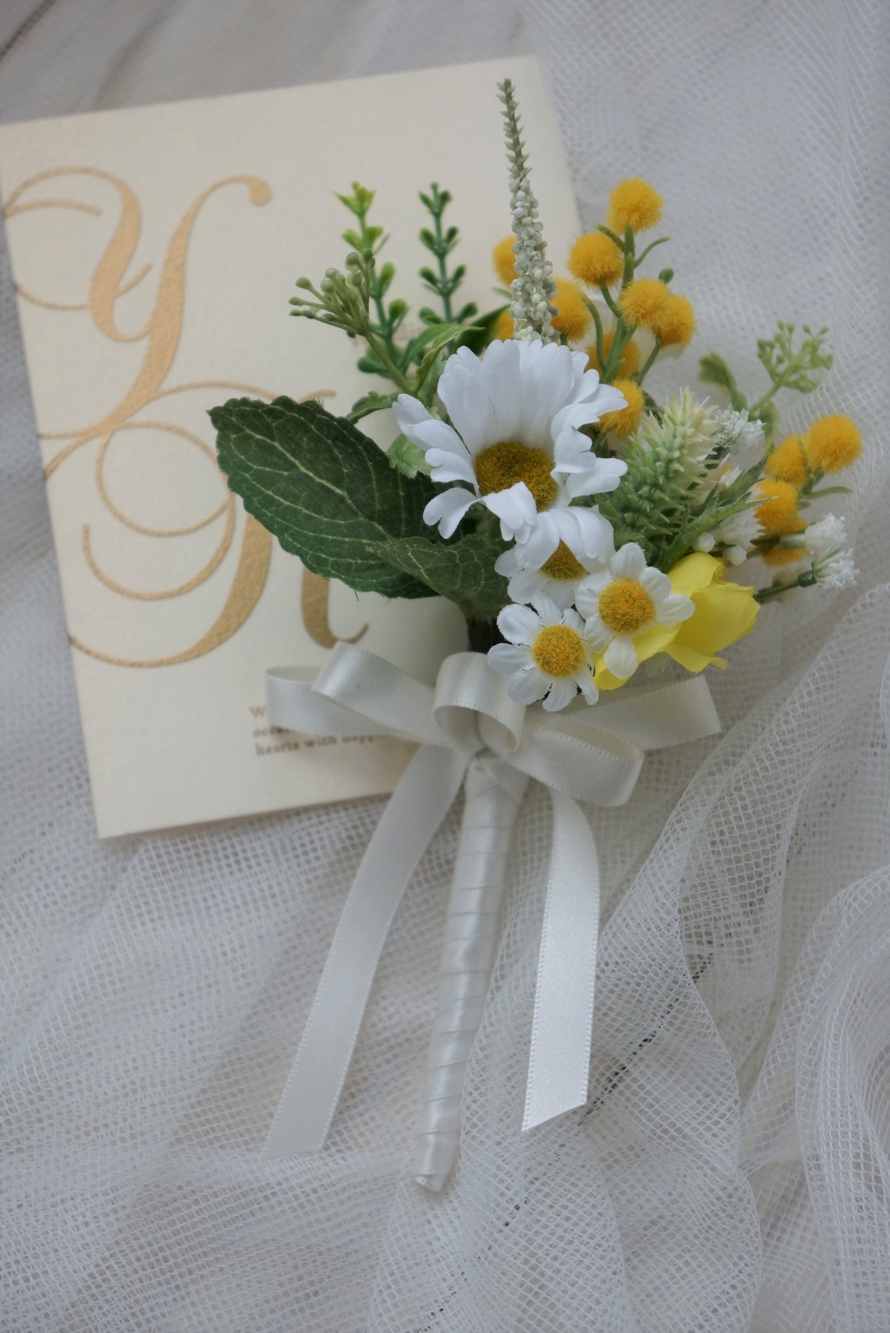 ミモザの他にもローズや小花、グリーンを数種類入れました。