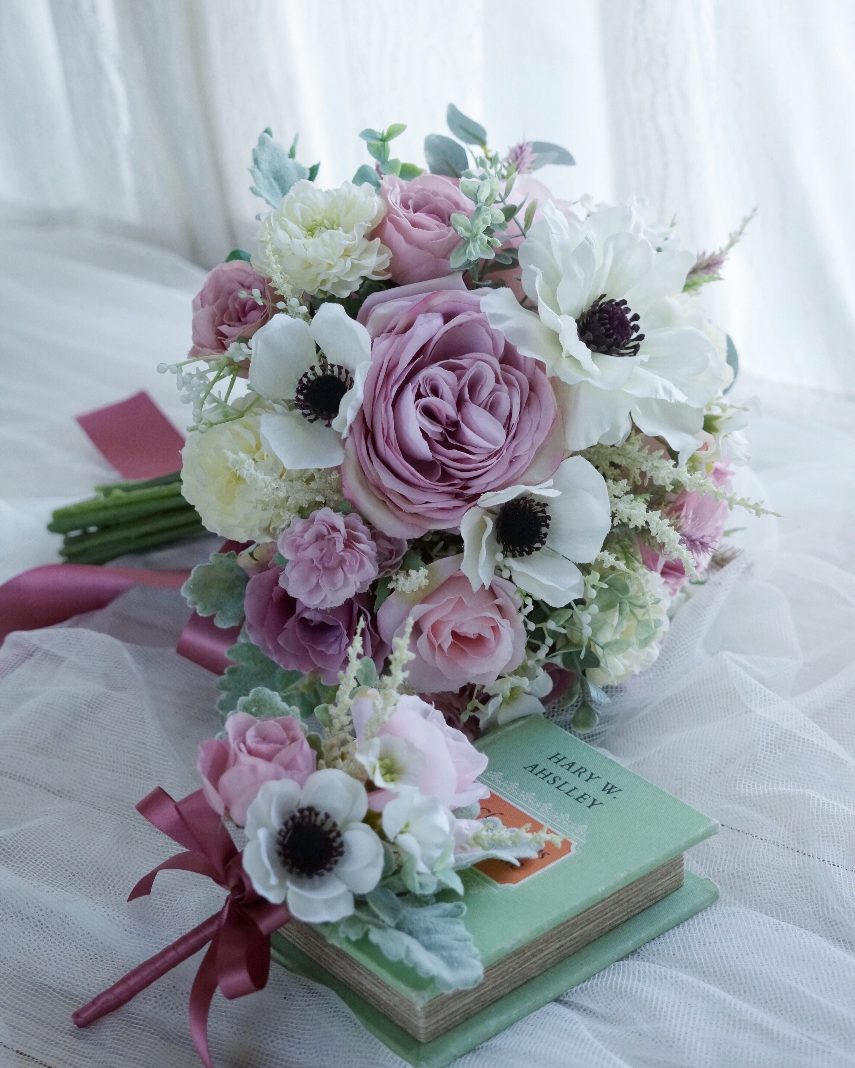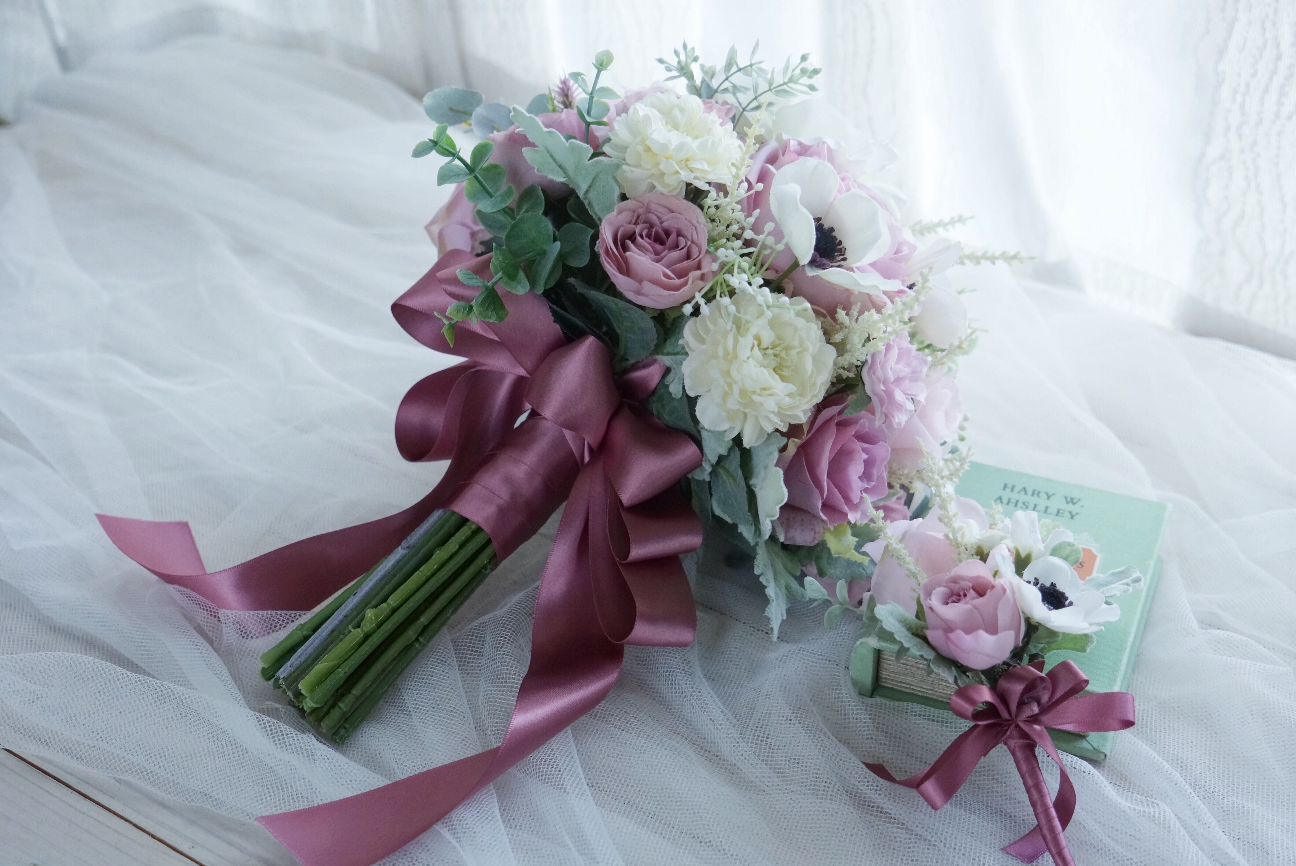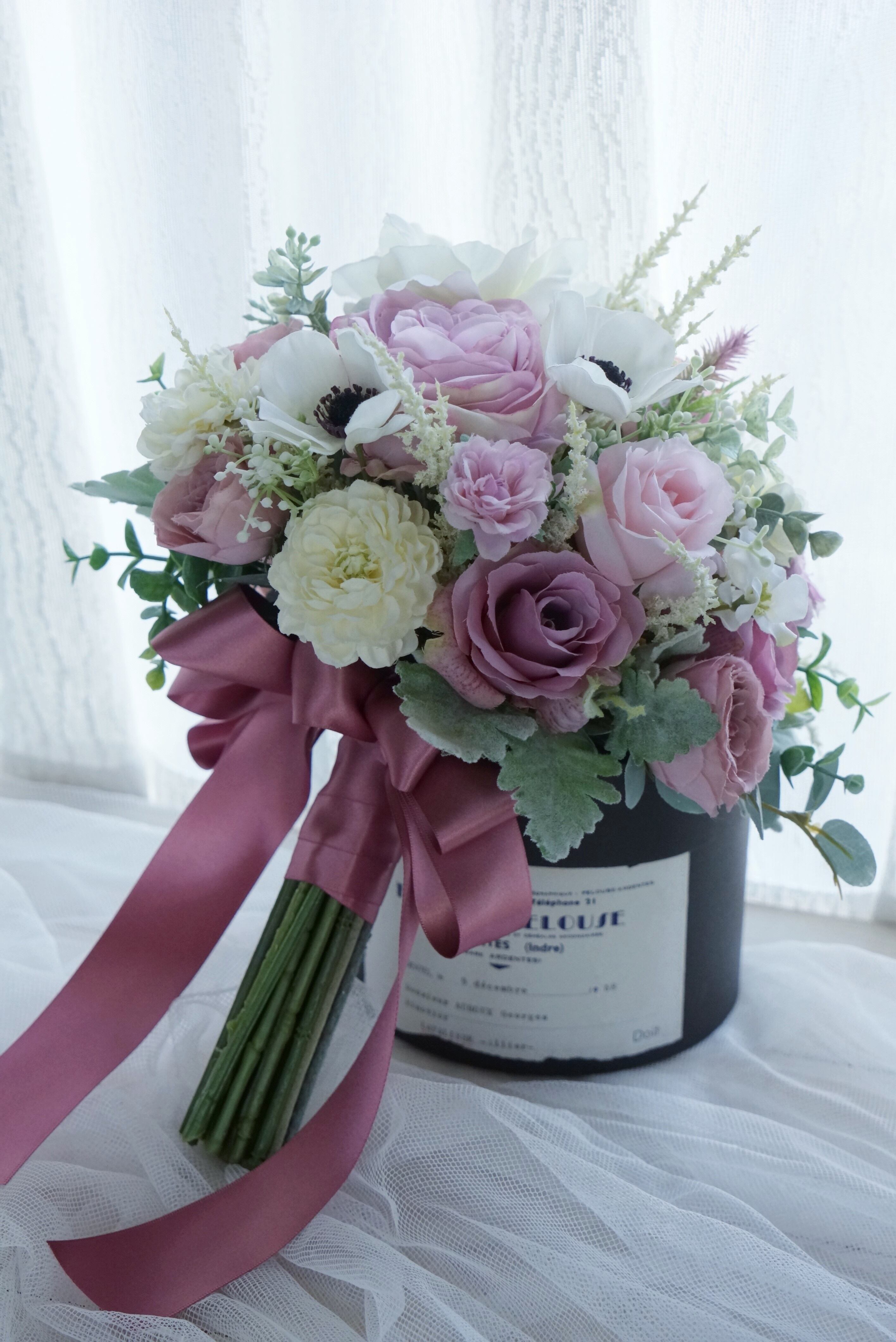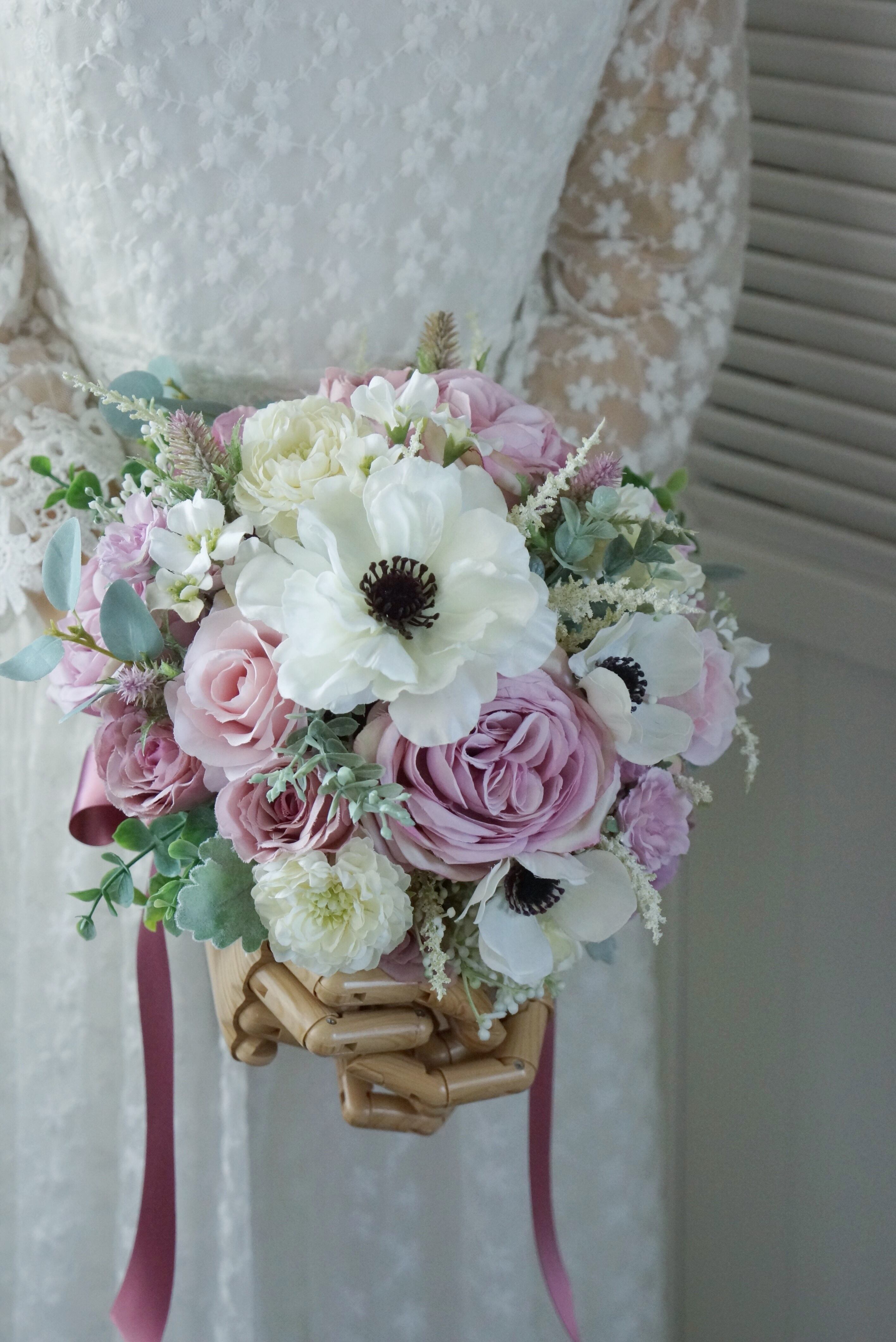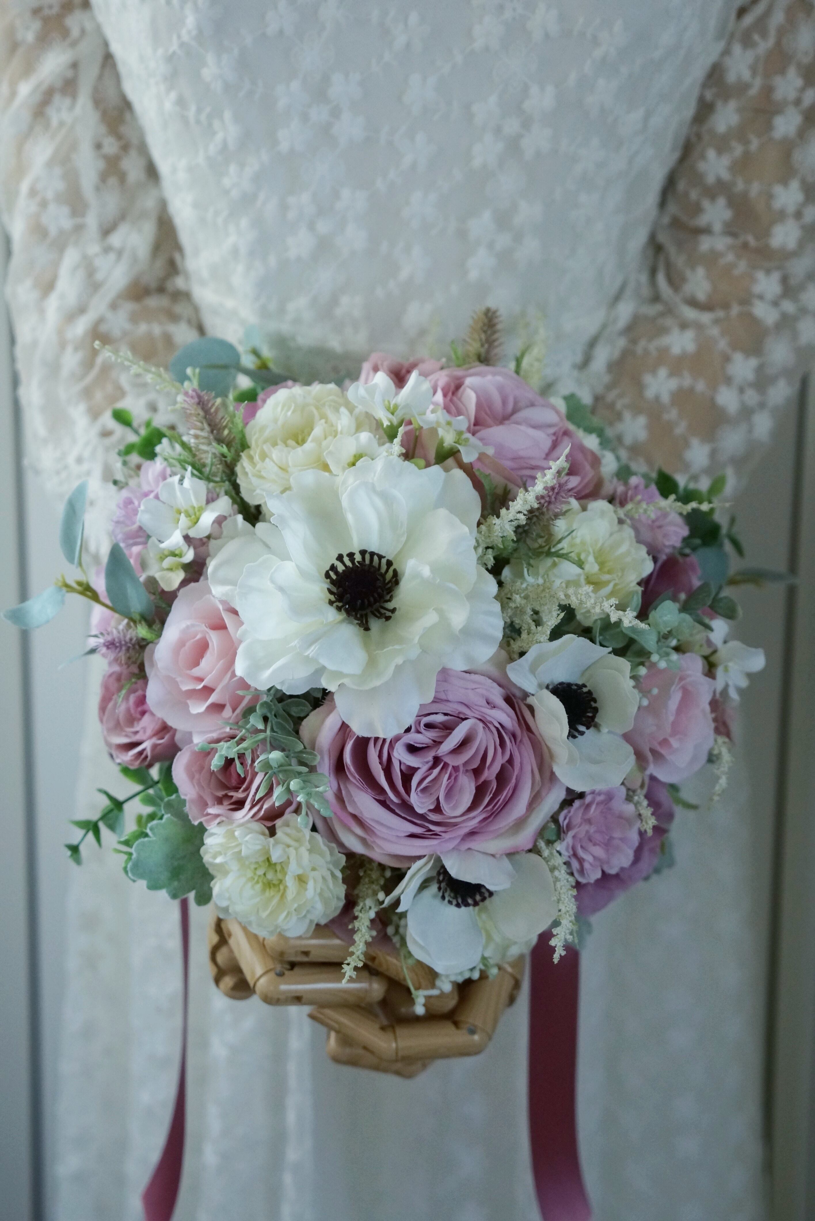 高品質のアーティフィシャルフラワーで束ねたウェディングブーケです。