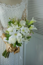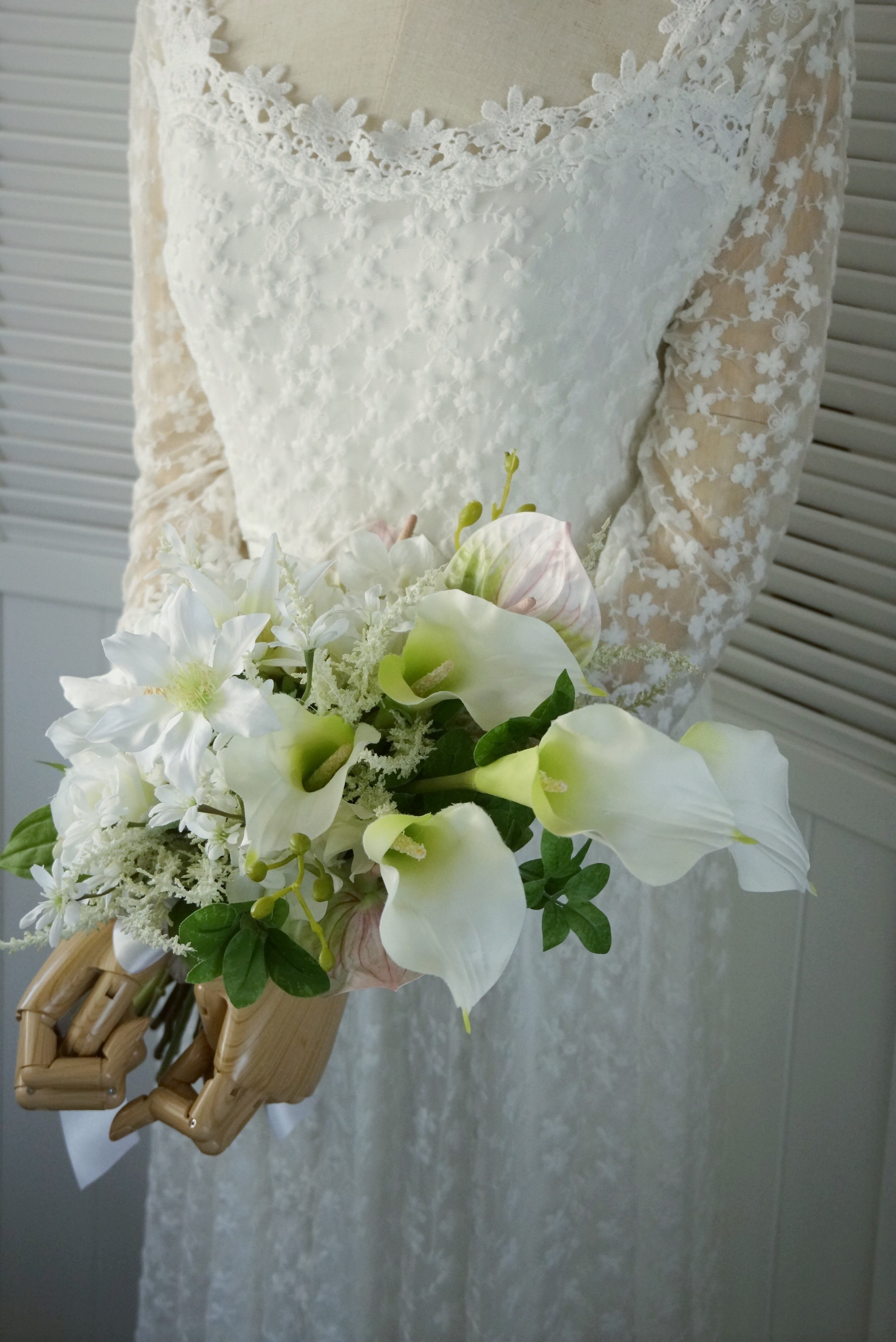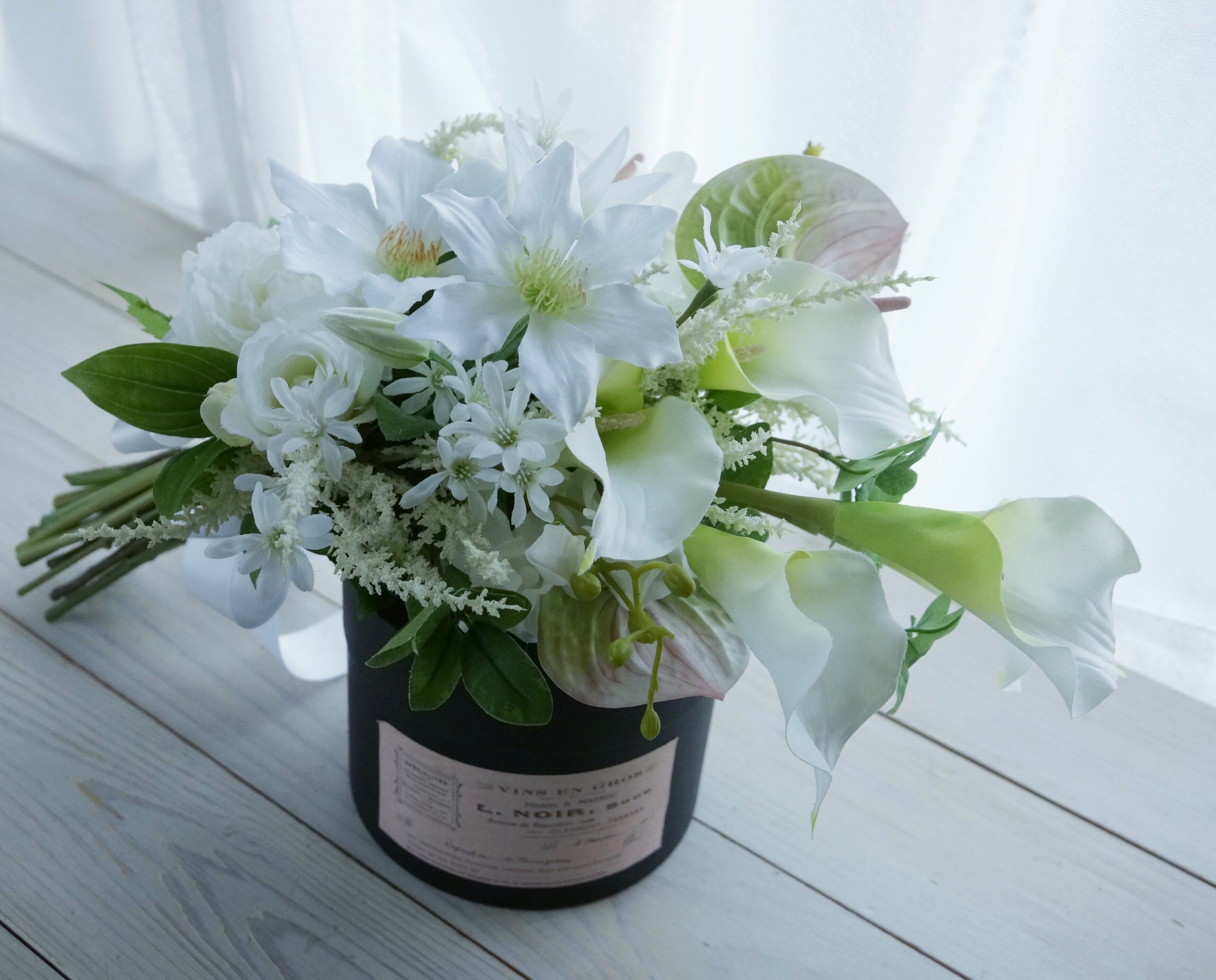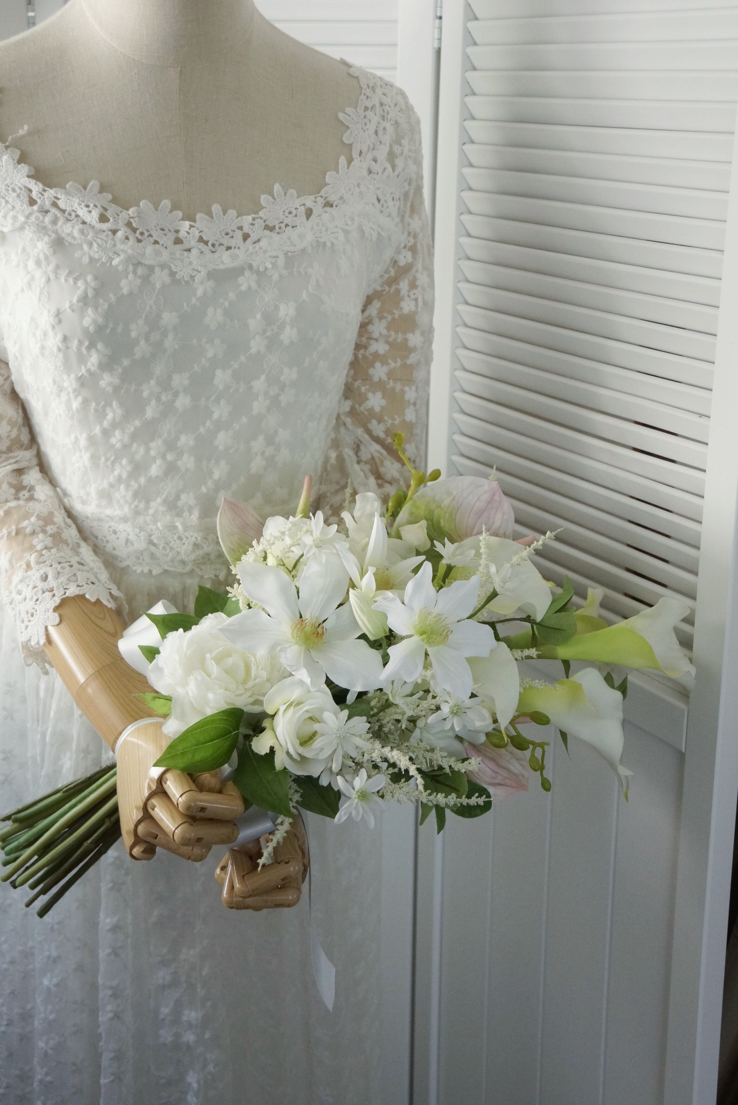 高品質のアーティフィシャルフラワーで束ねたウェディングブーケです。