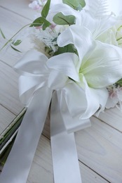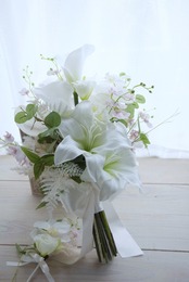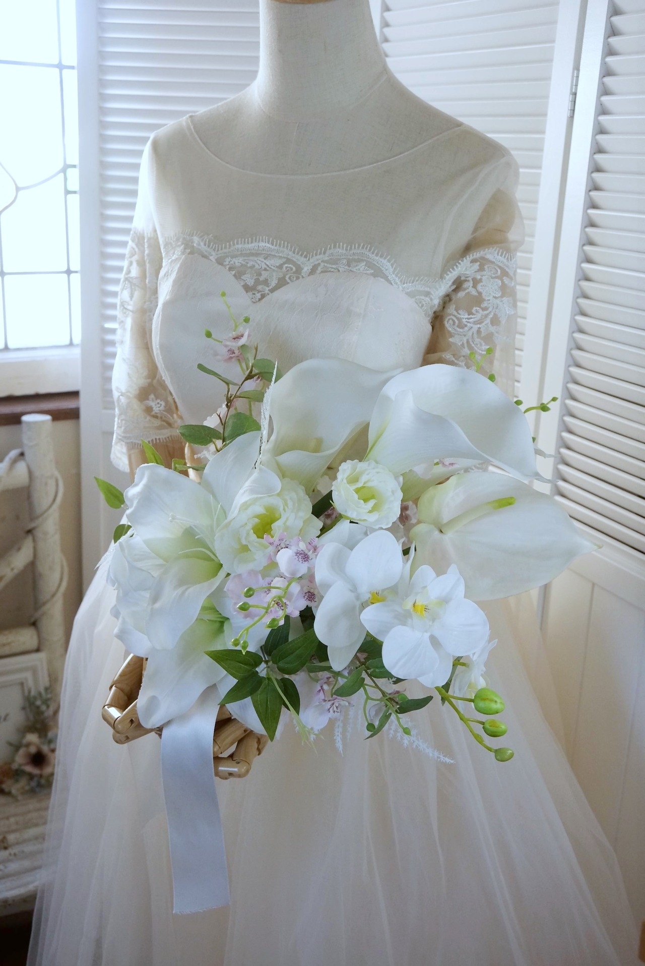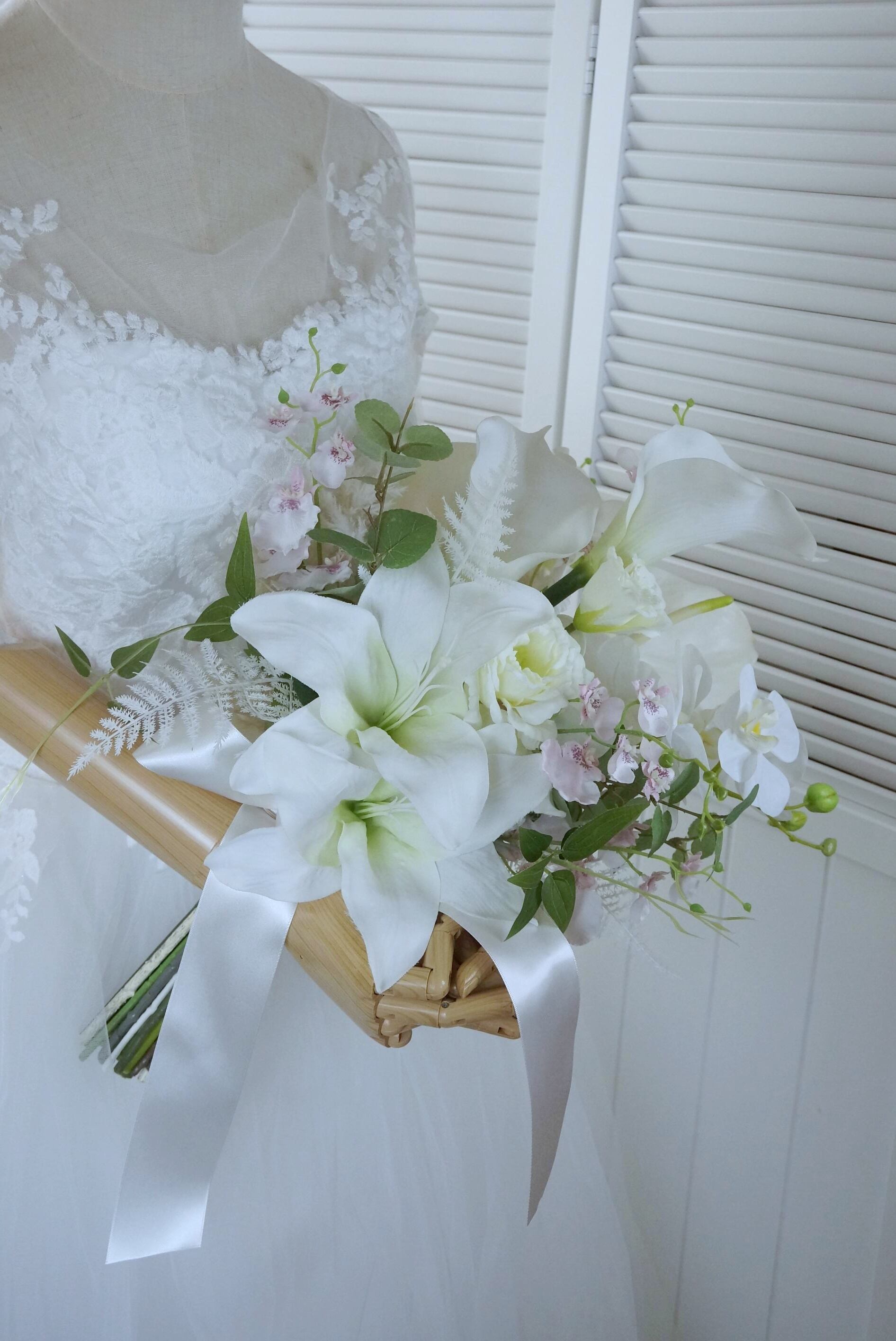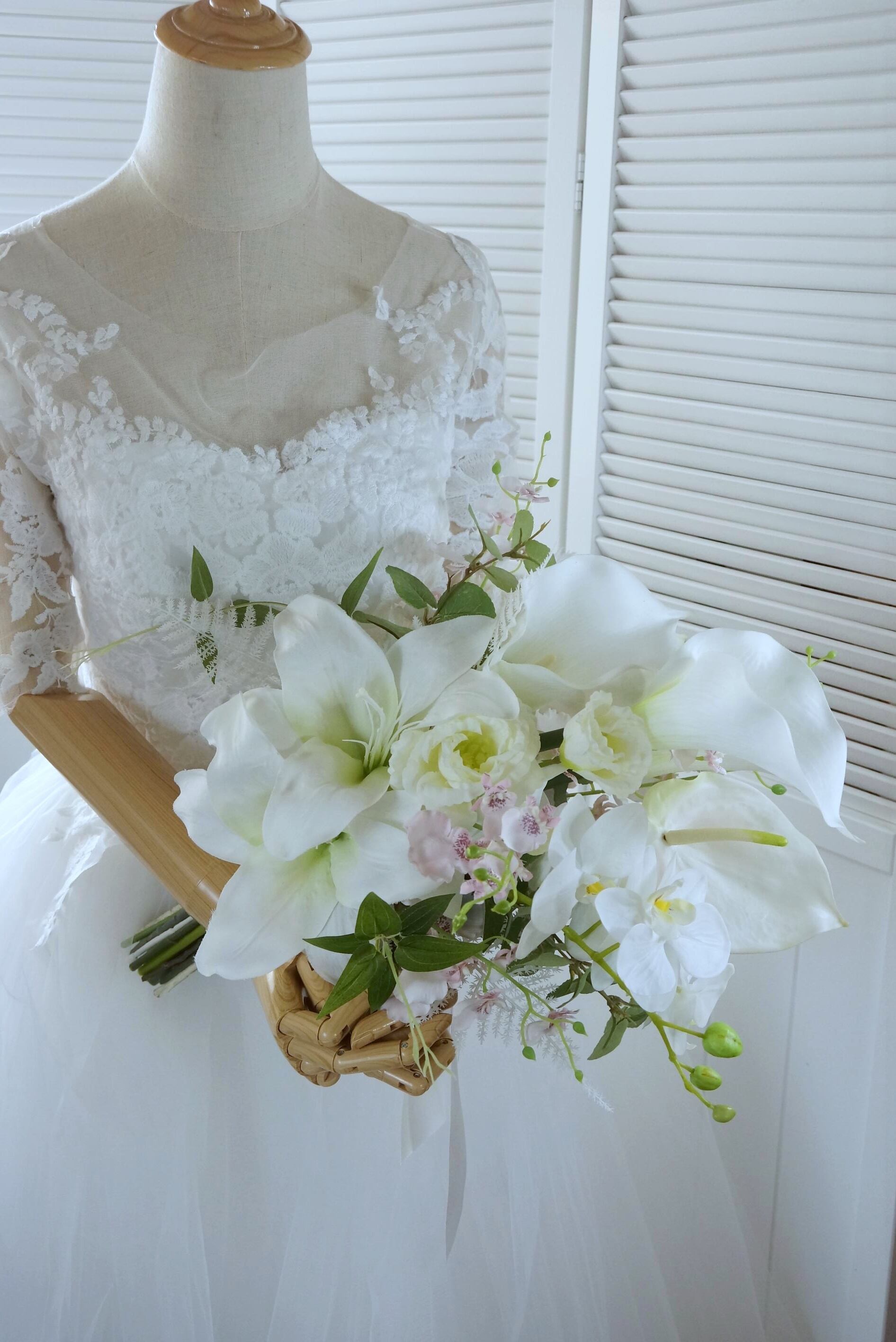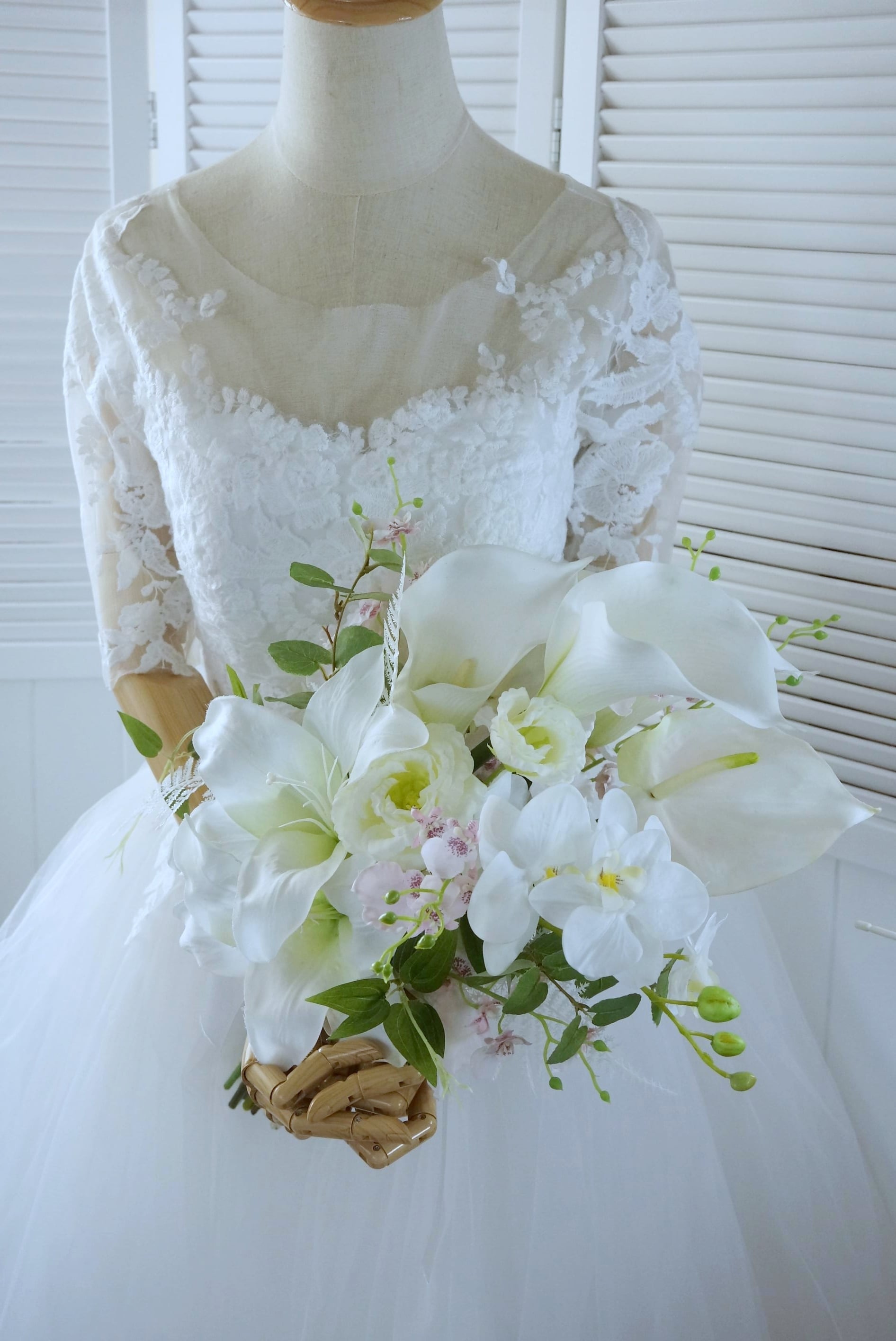 高品質のアーティフィシャルフラワーで束ねたウェディングブーケです。
