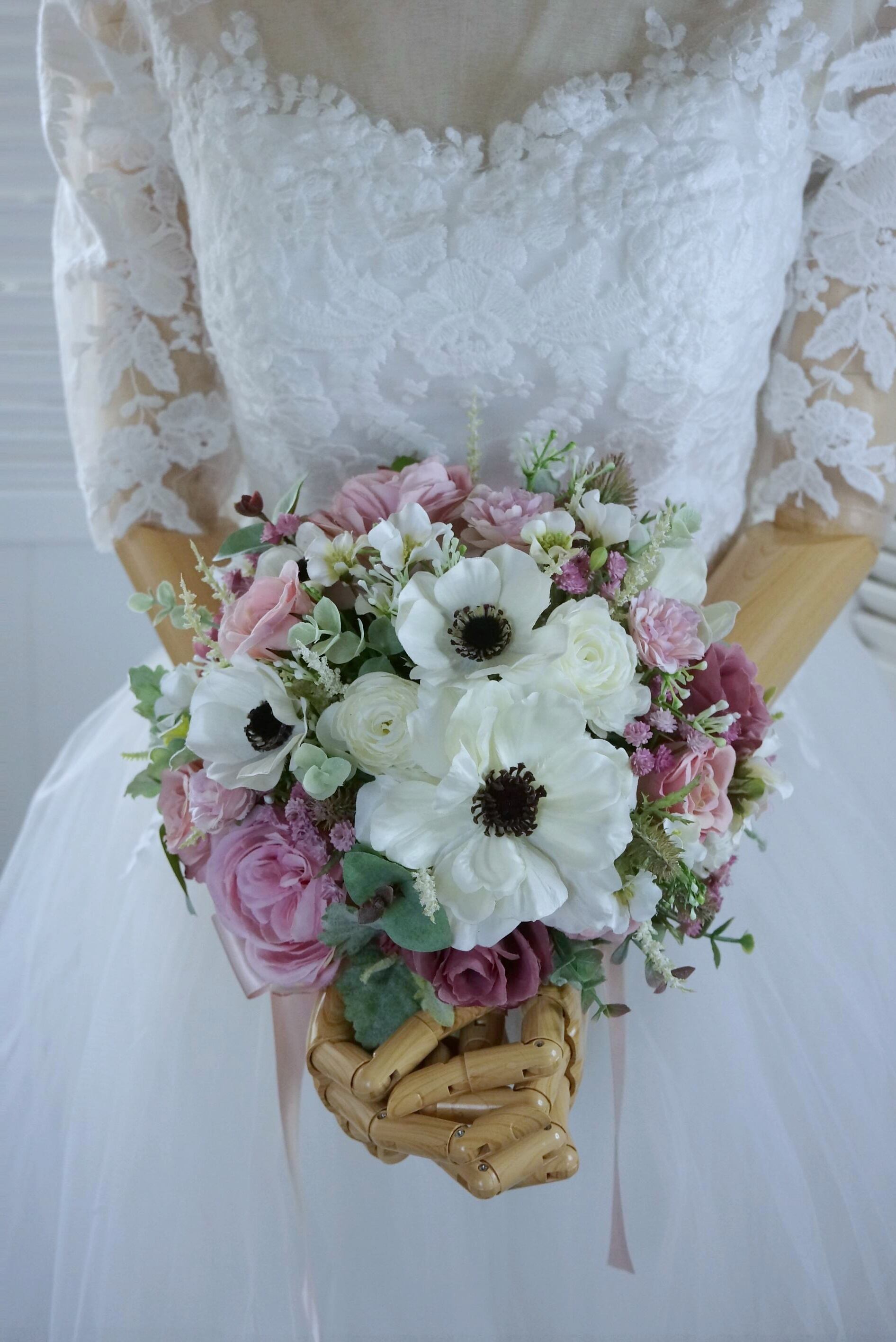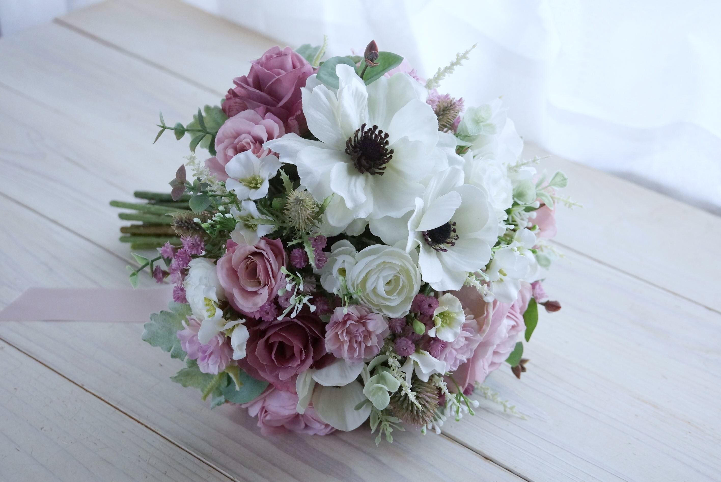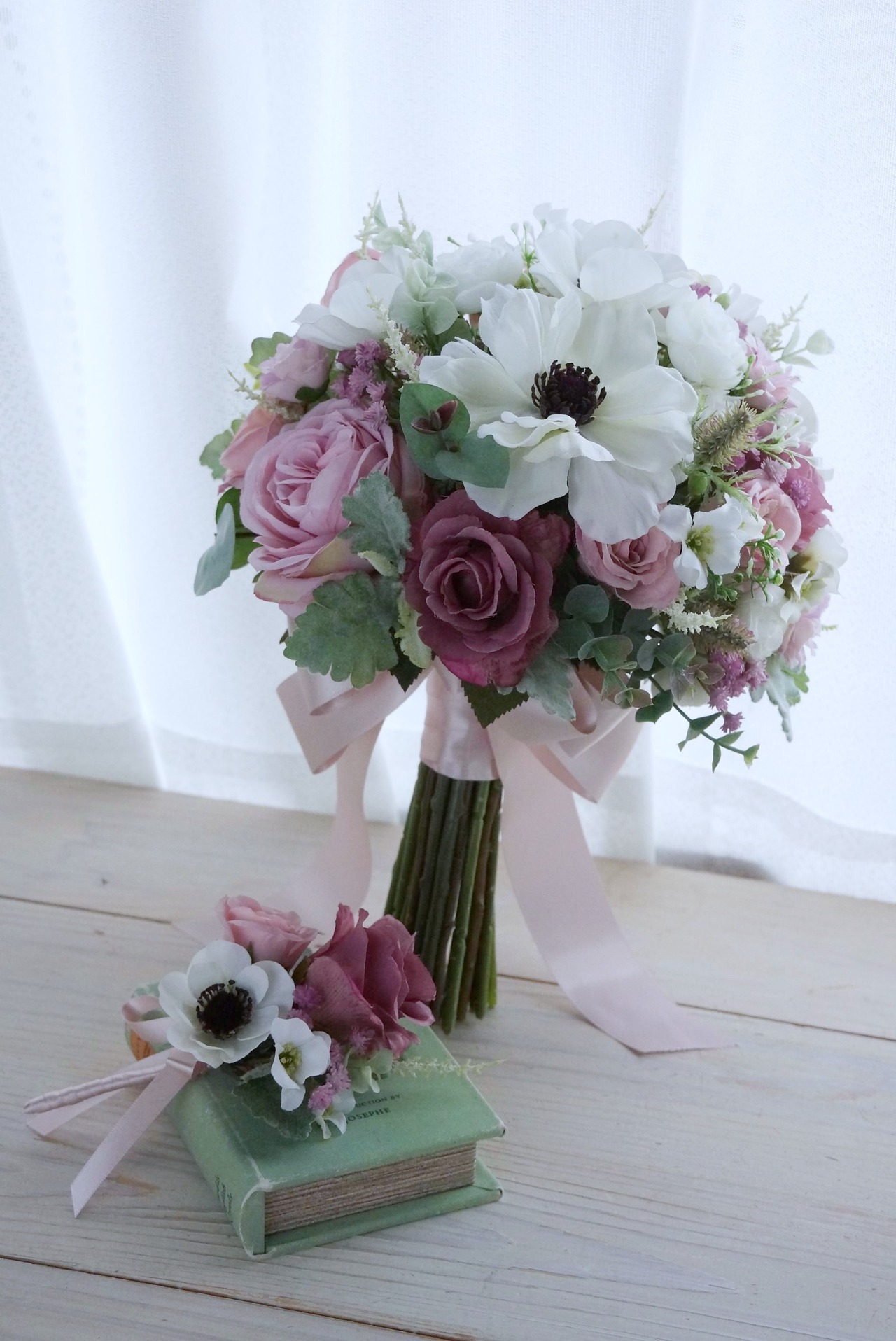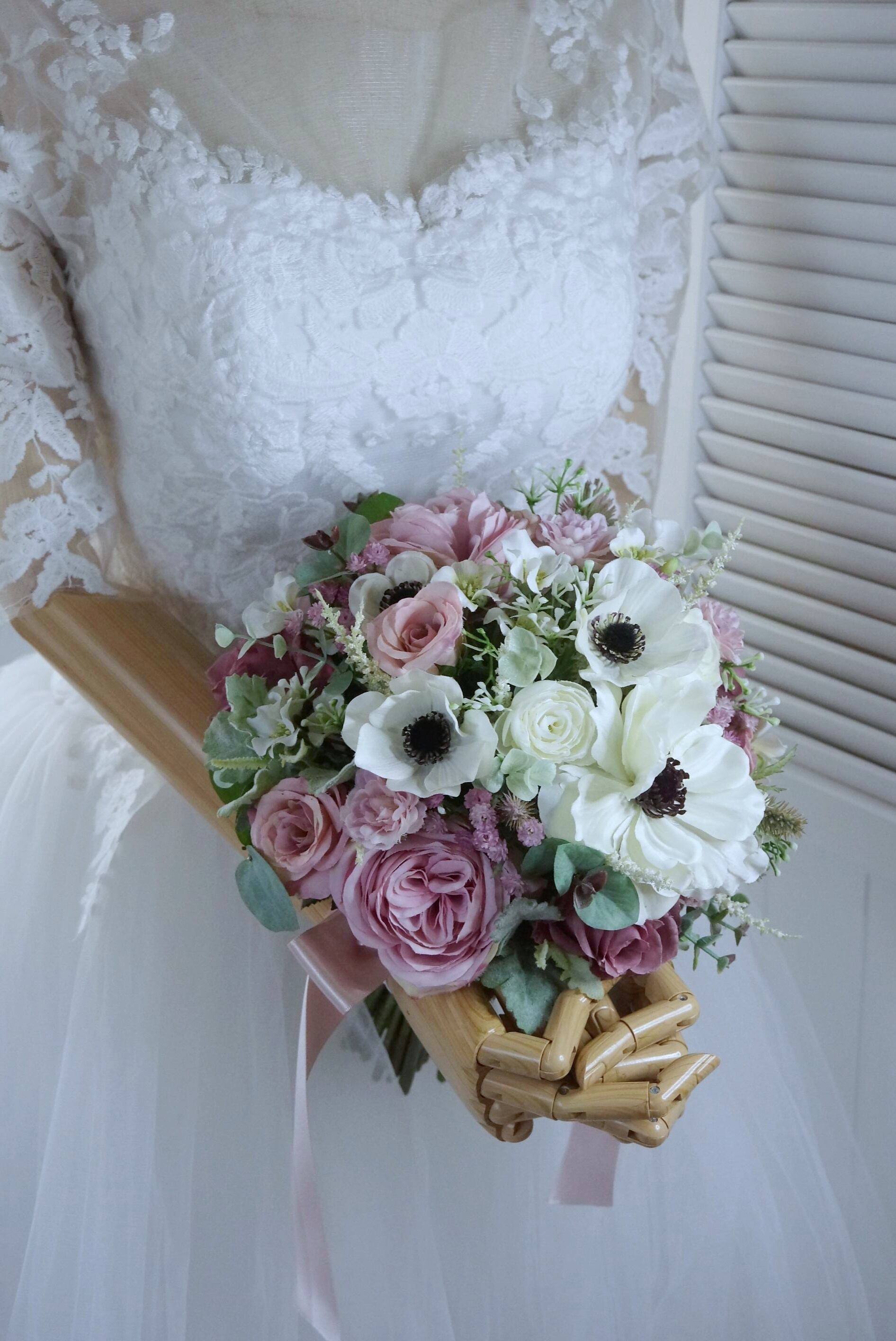 高品質のアーティフィシャルフラワーで束ねたウェディングブーケです。