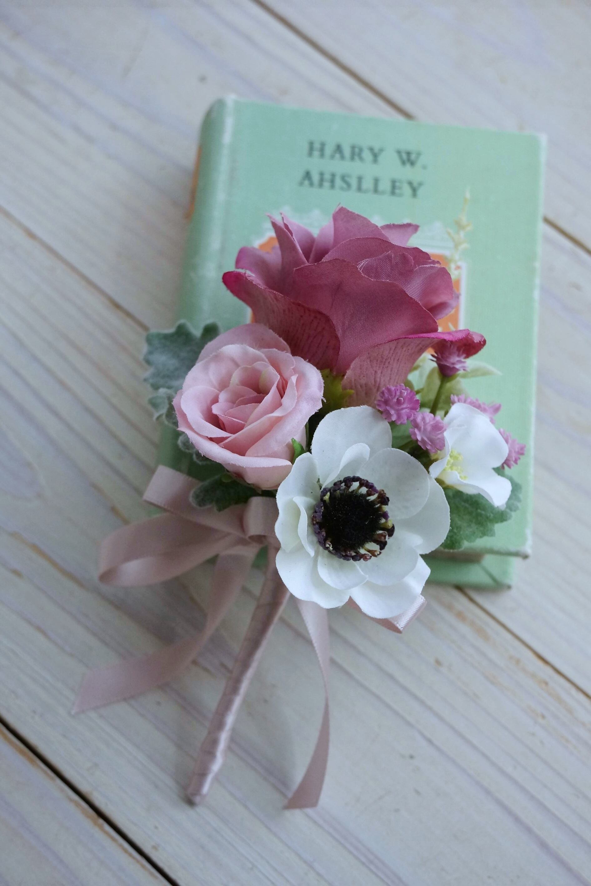 少しずつお色や大きさ、咲き方の違うくすみピンクのローズを