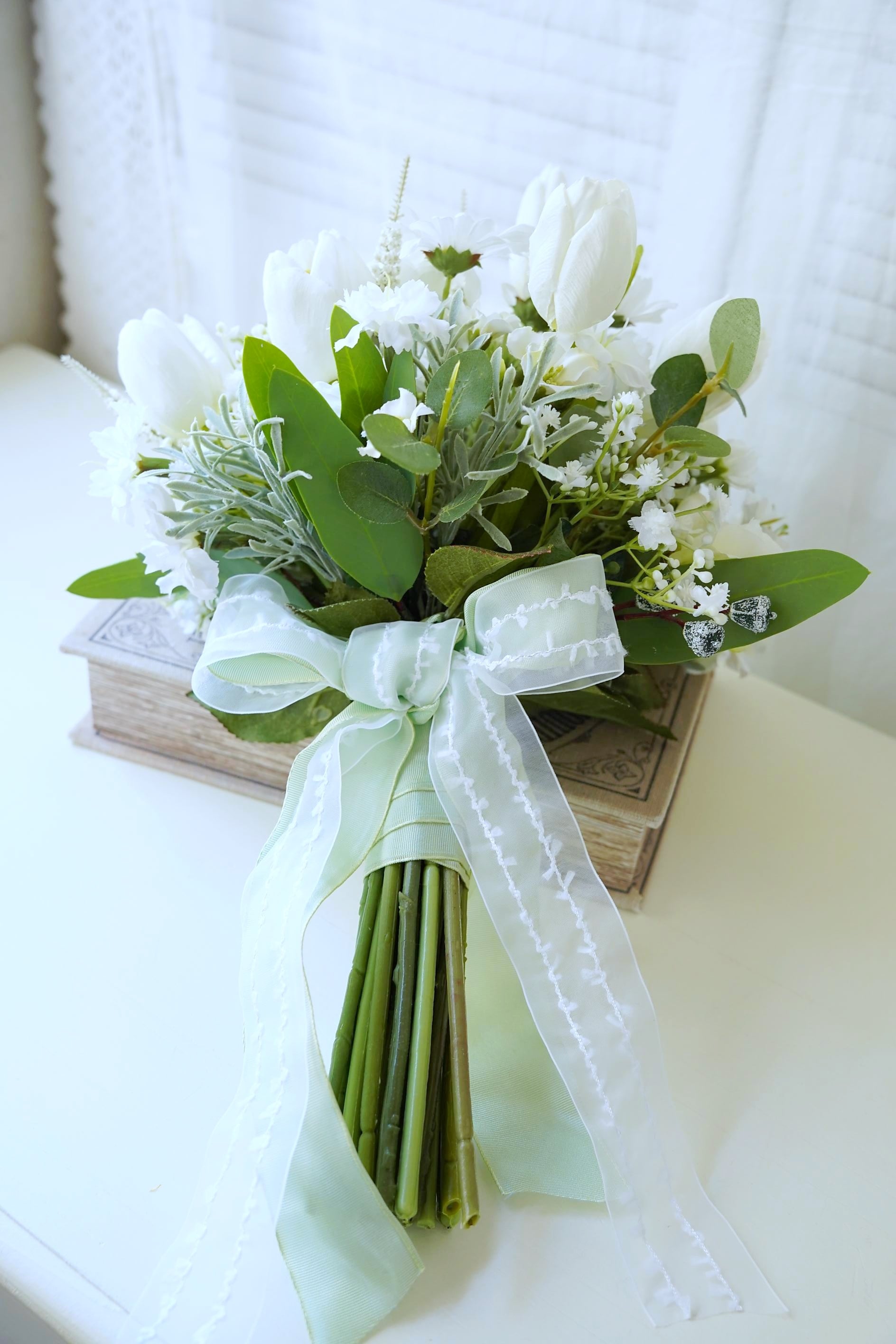 ホワイトチューリップのナチュラルブーケ ウェディングブーケ