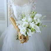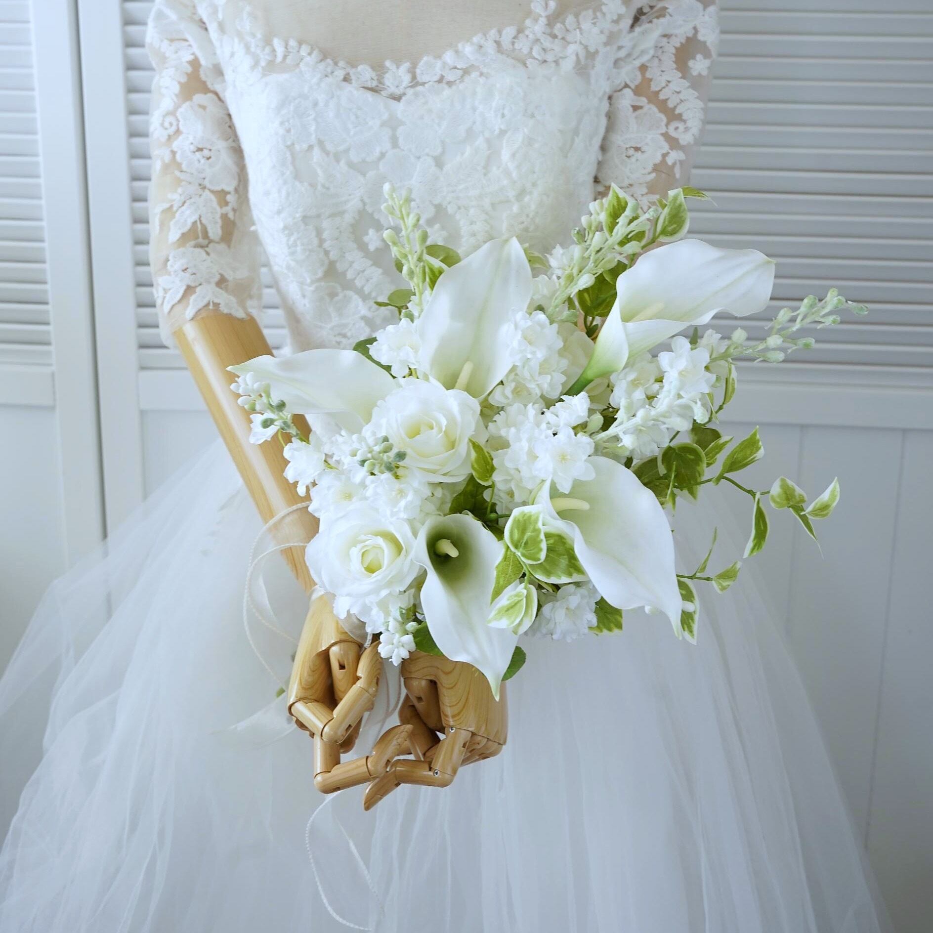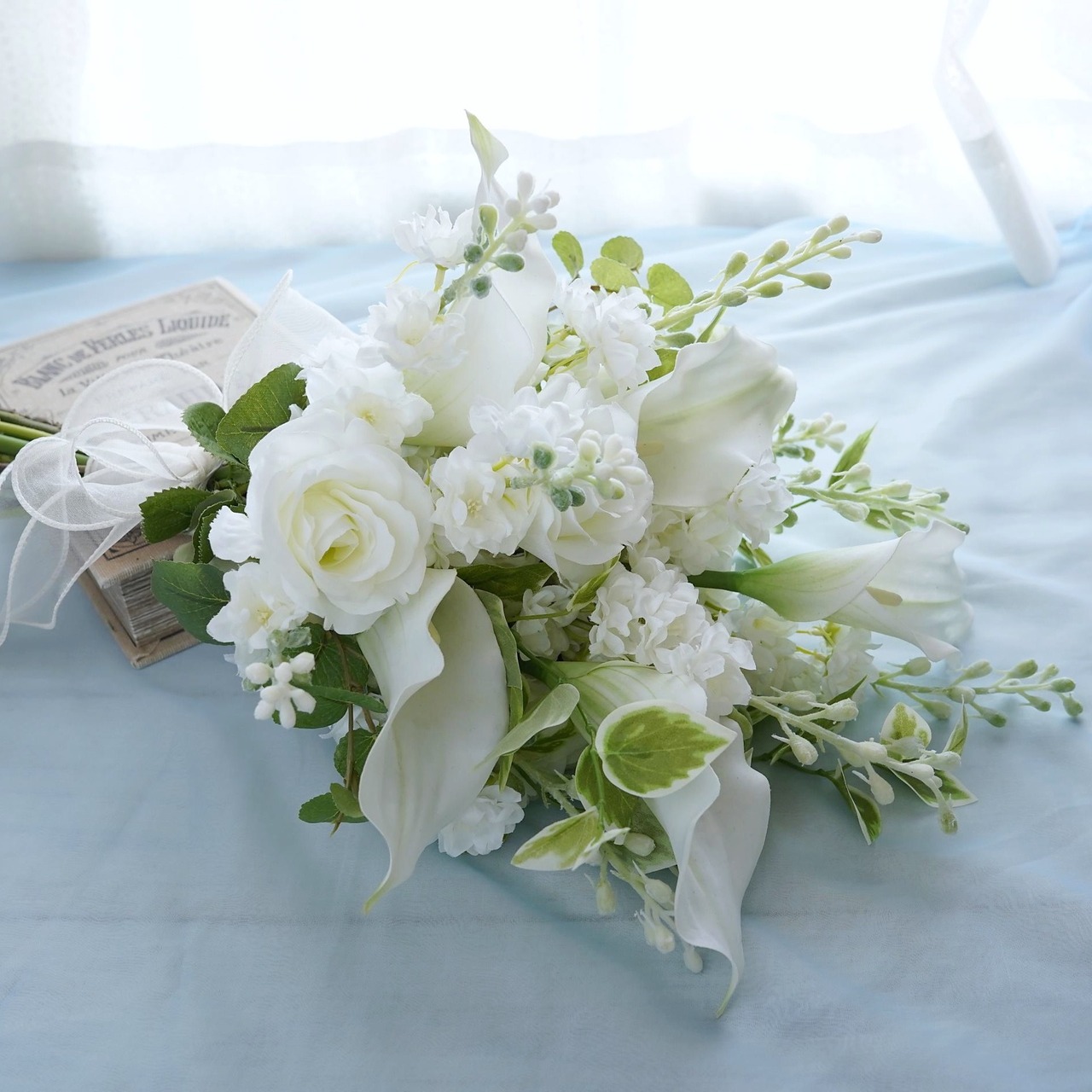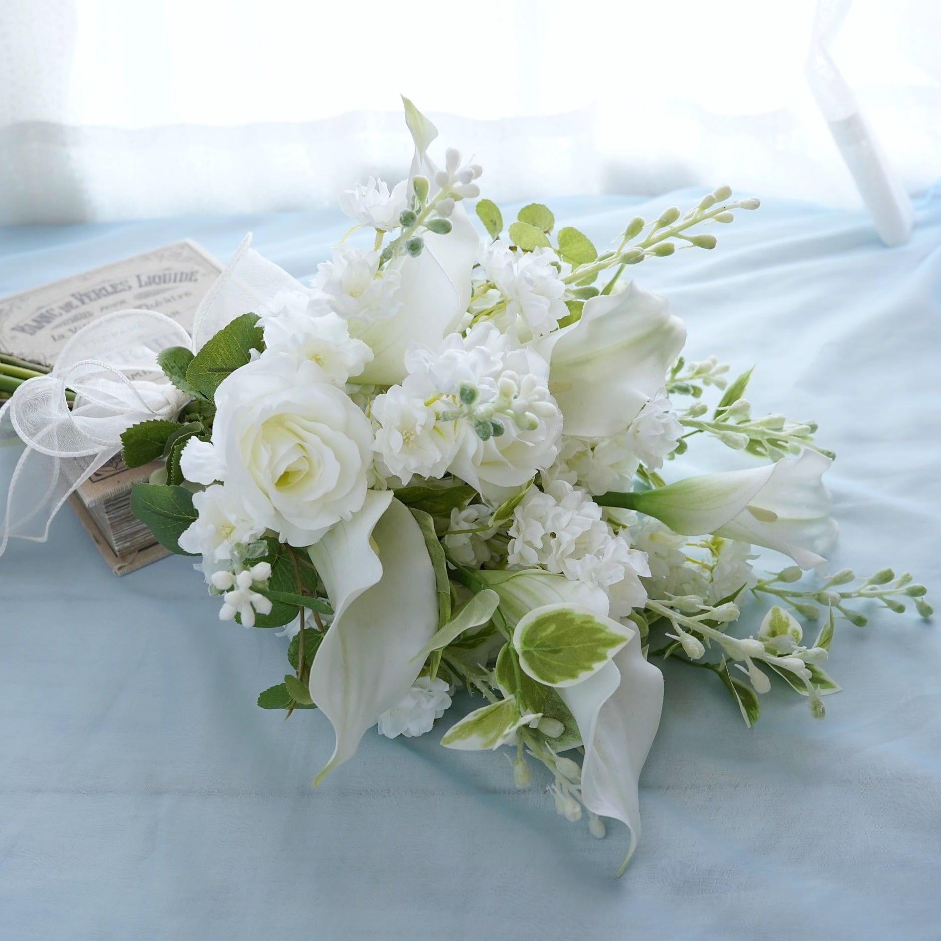 高品質のアーティフィシャルフラワーで束ねたウェディングブーケです。