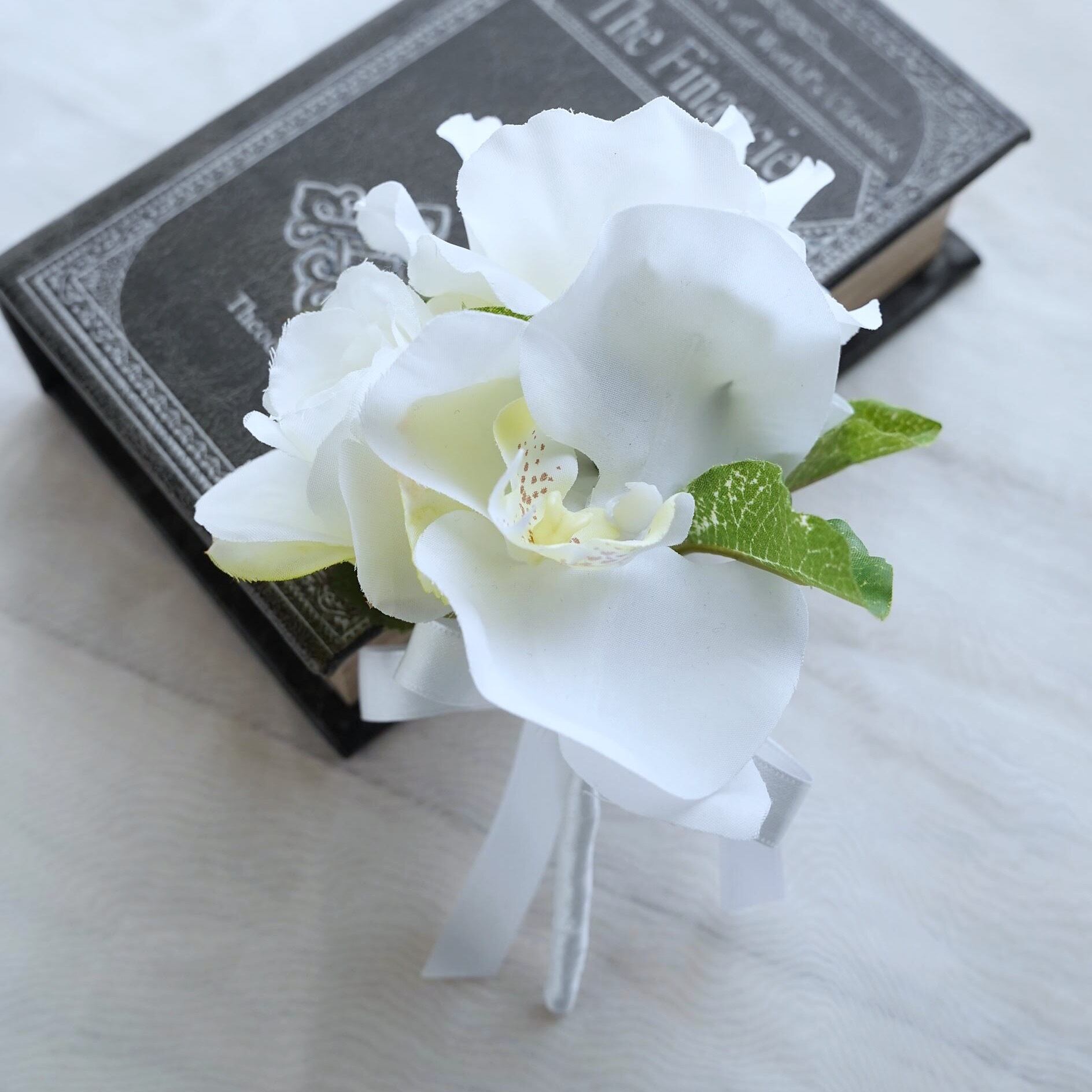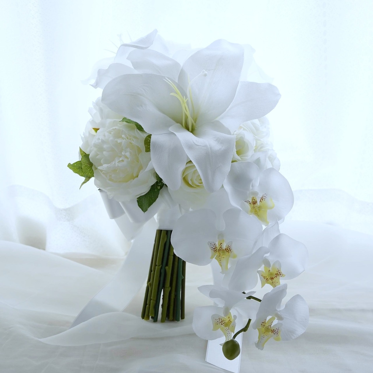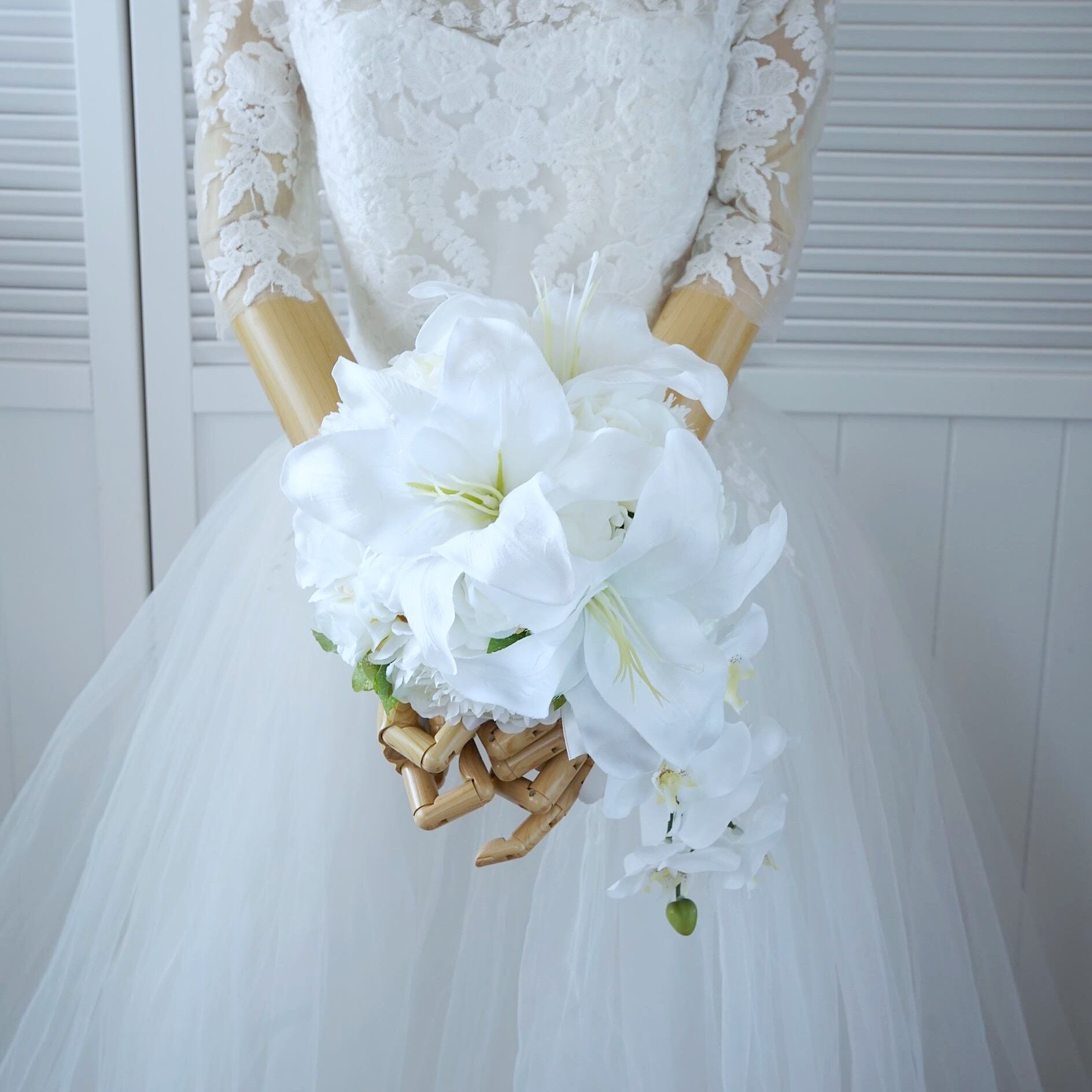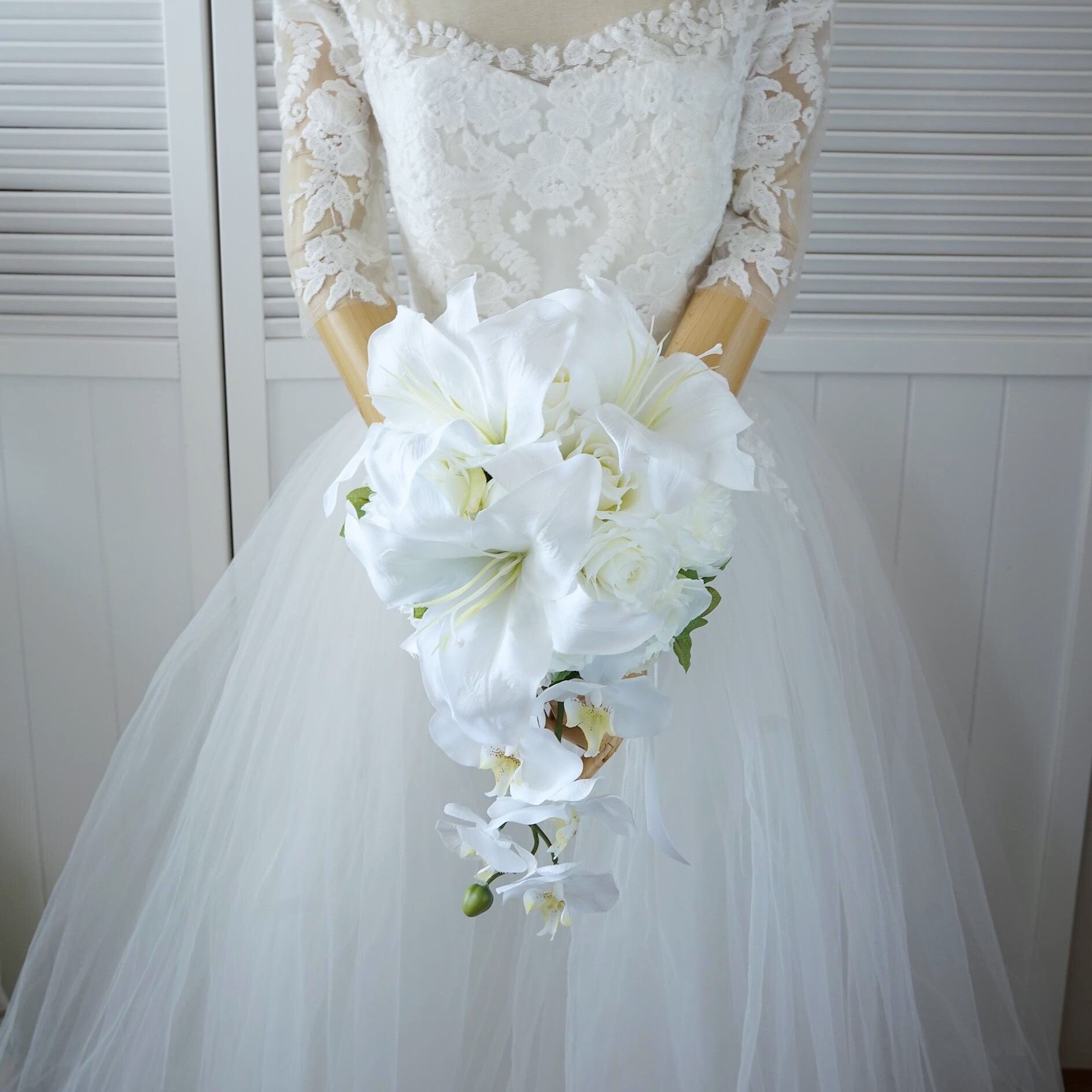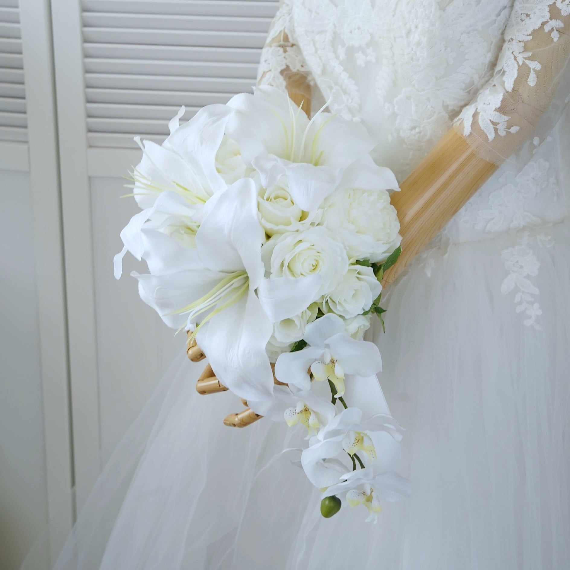 カサブランカと胡蝶蘭のクラッチブーケ ウェディングブーケ