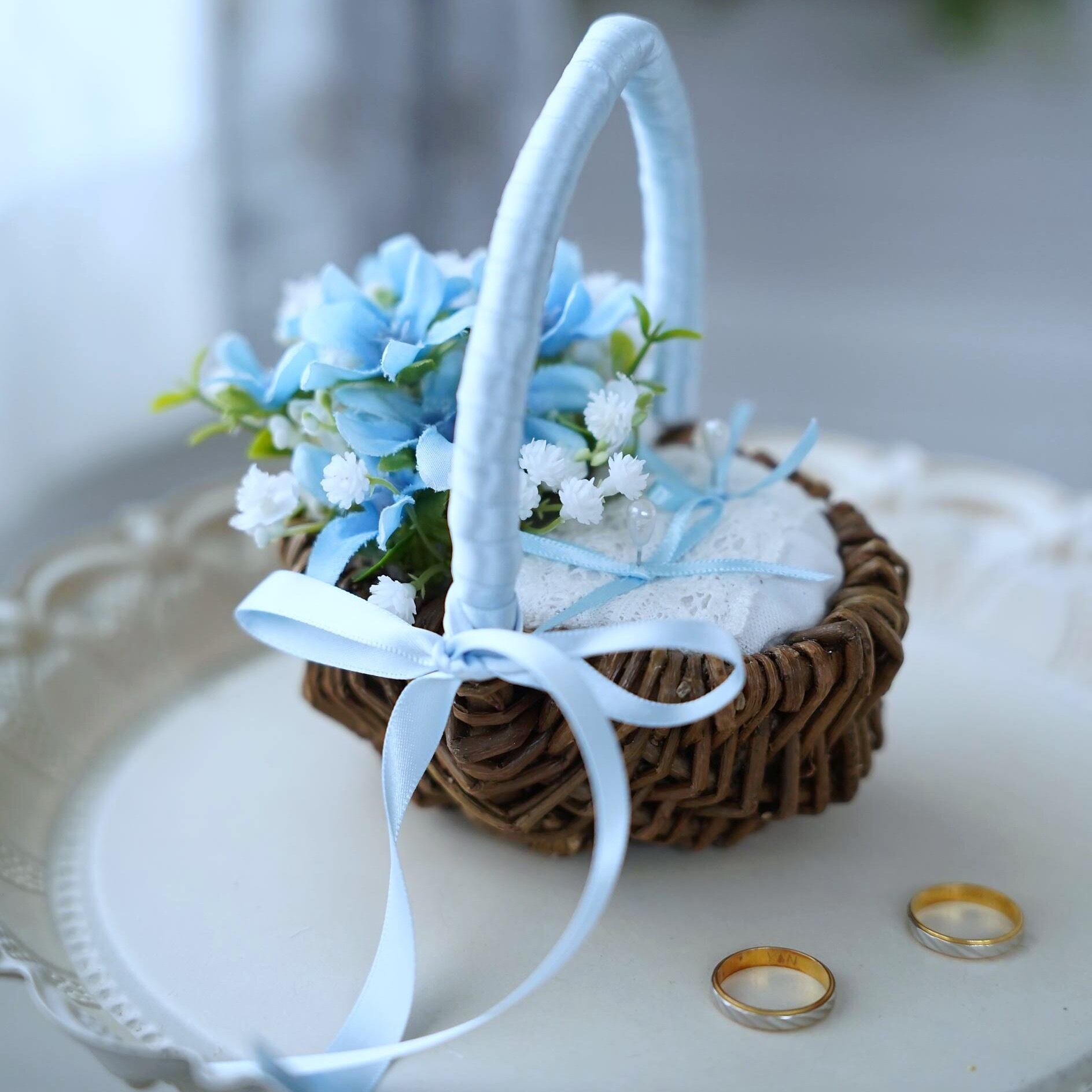 ナチュラルなバスケットのリングピローです。