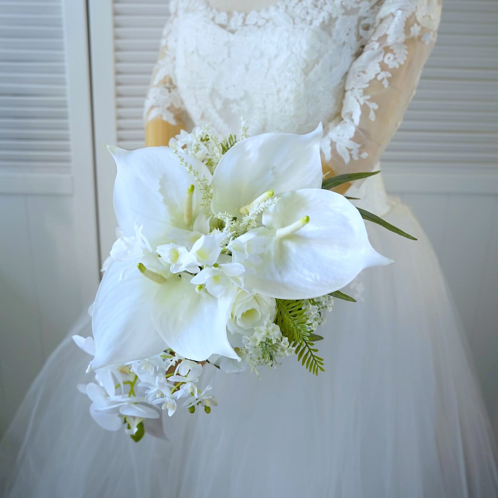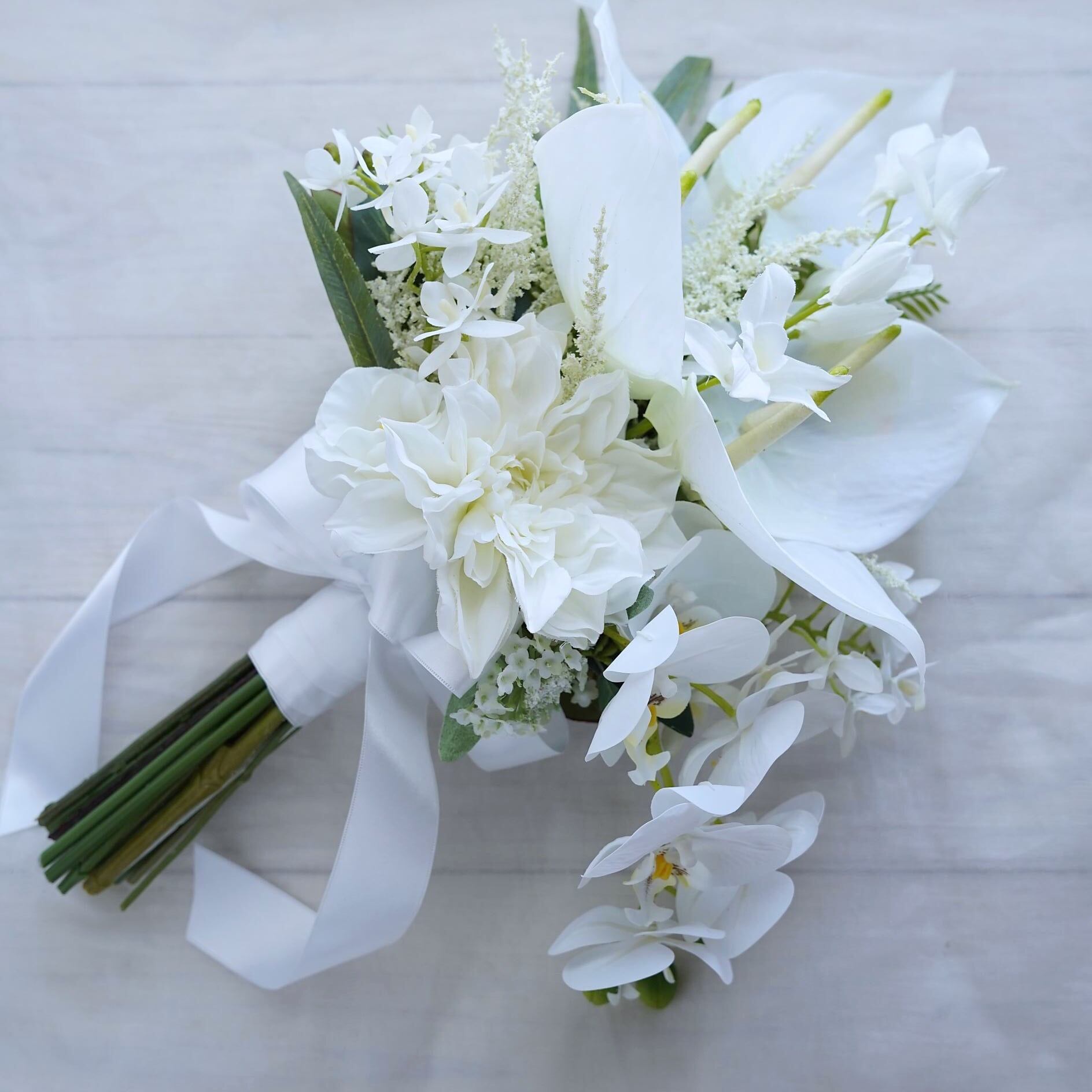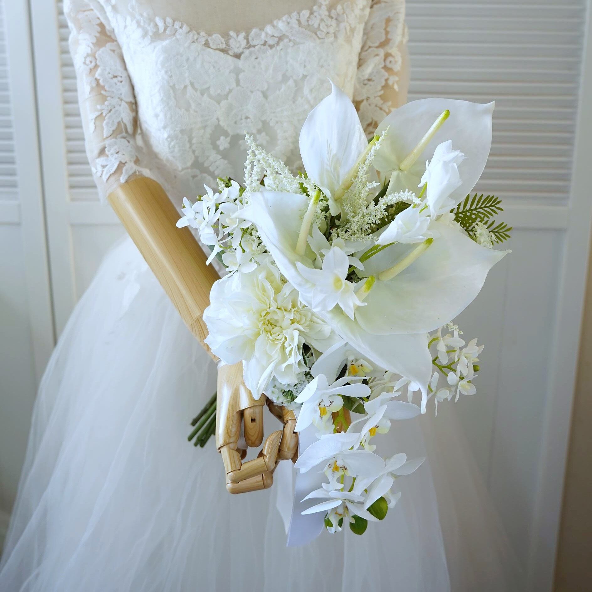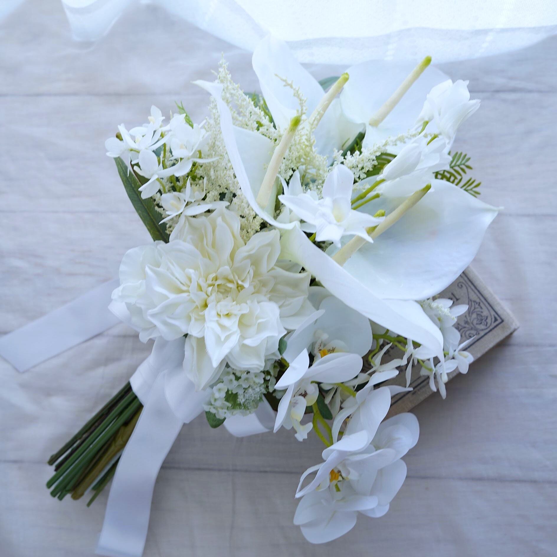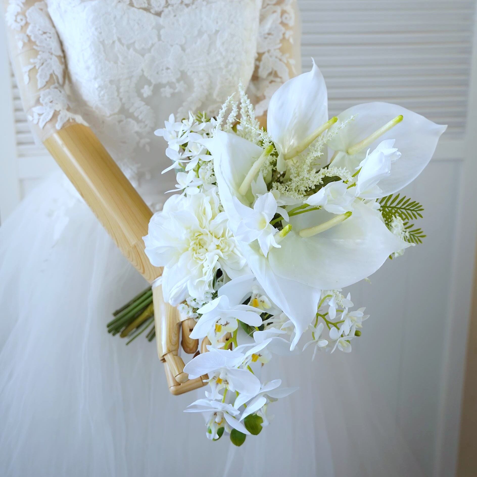 アンスリウムと胡蝶蘭のホワイトブーケ ウェディングブーケ