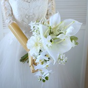 高品質のアーティフィシャルフラワーで束ねたウェディングブーケです。