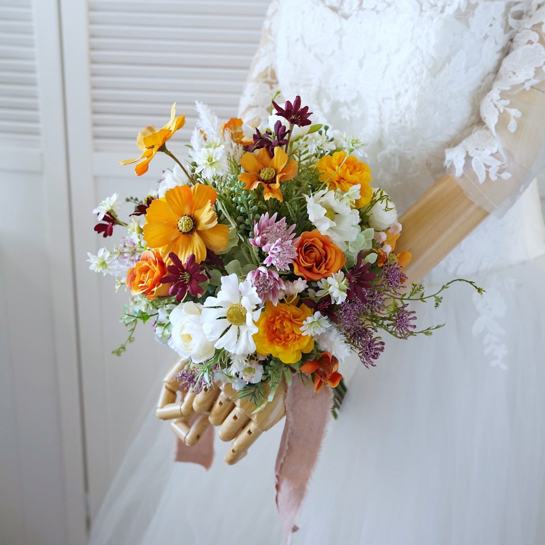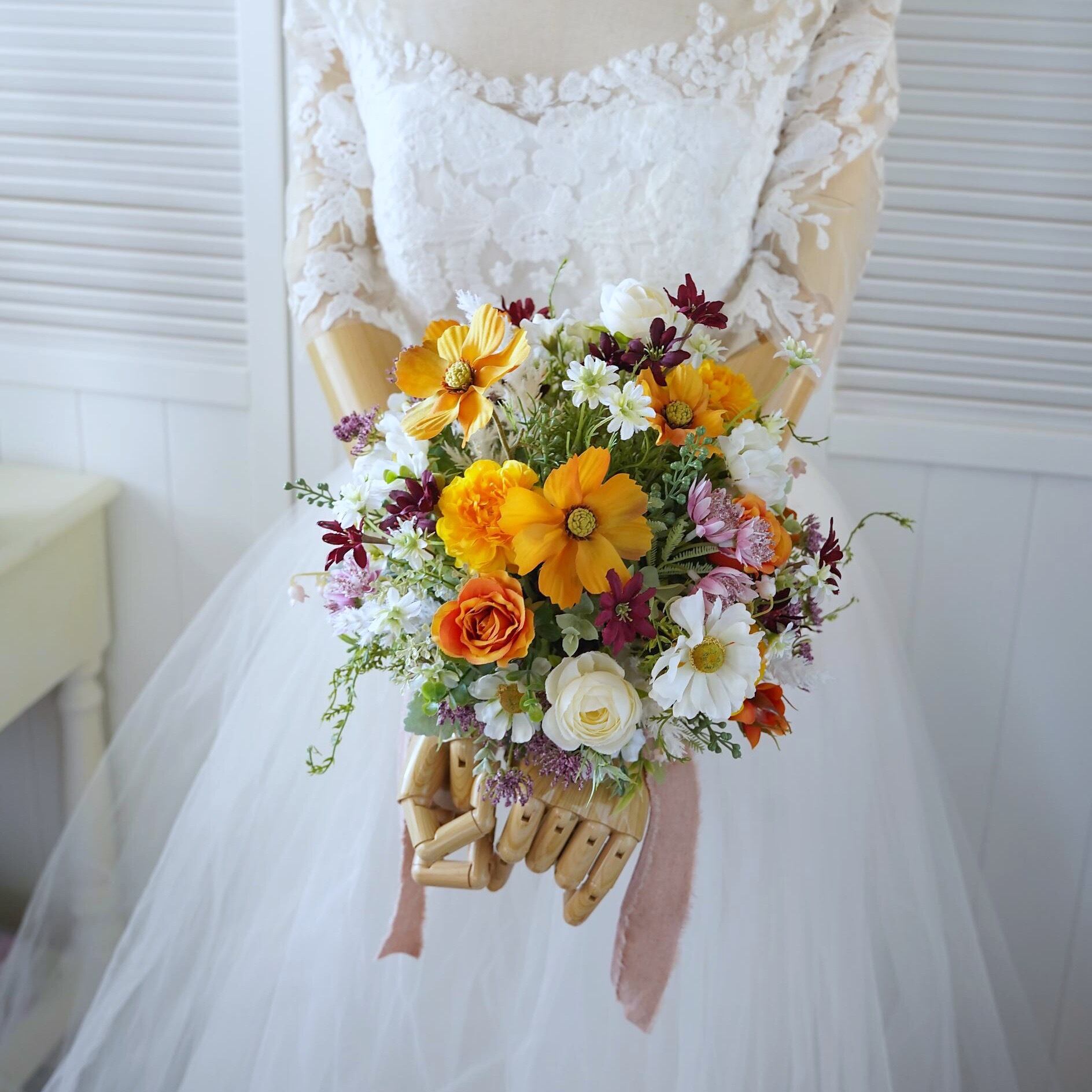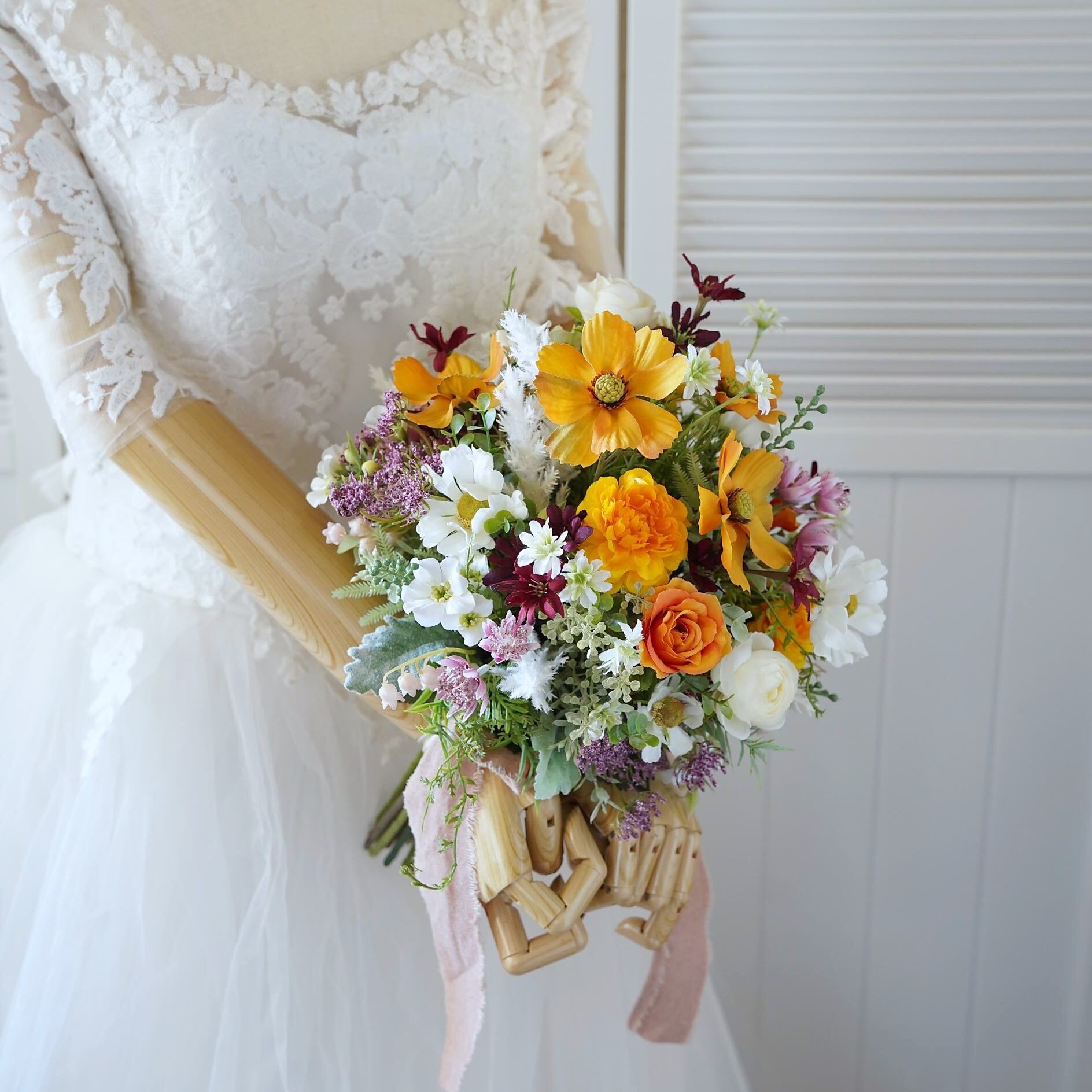 オレンジコスモスと小花のブーケ ウェディングブーケ