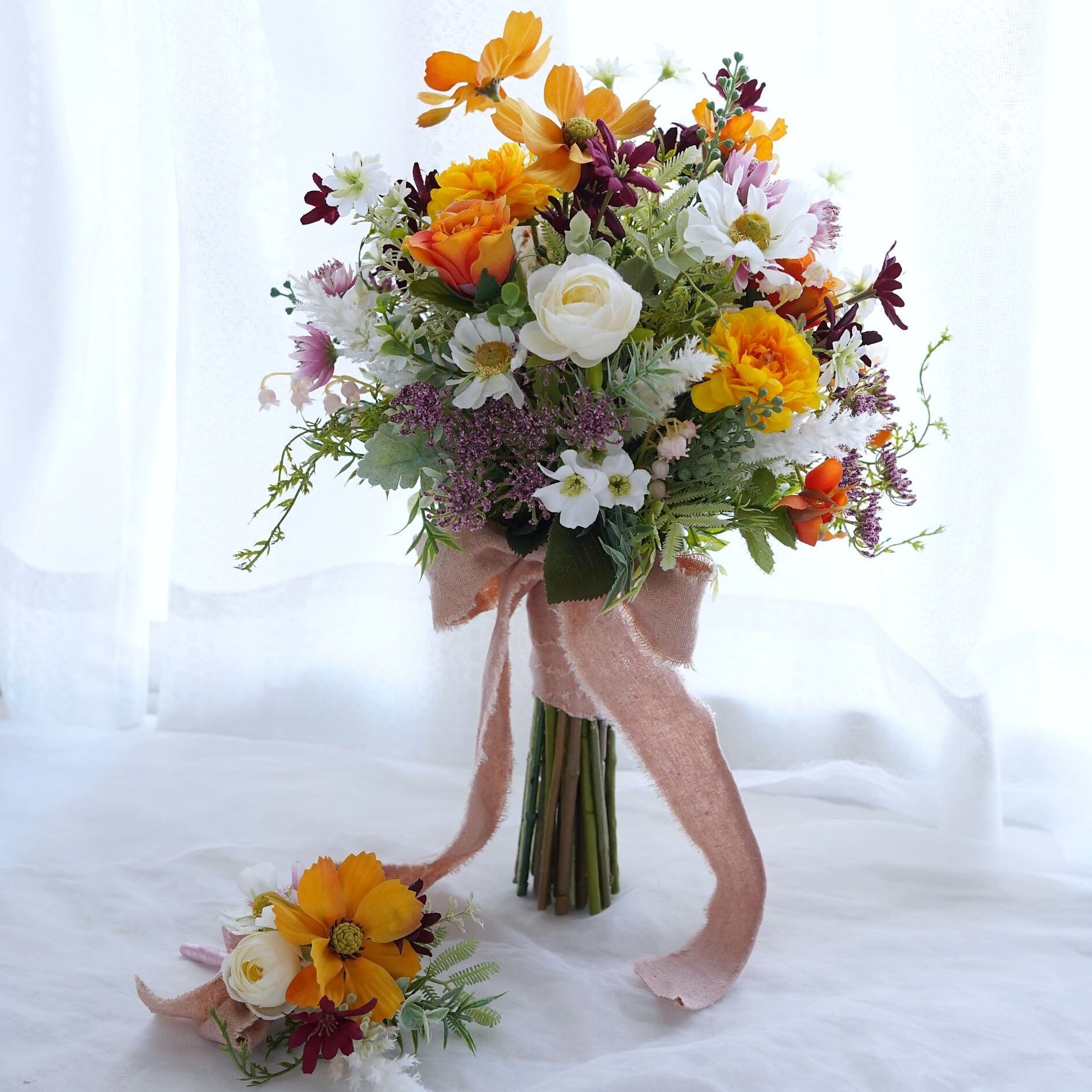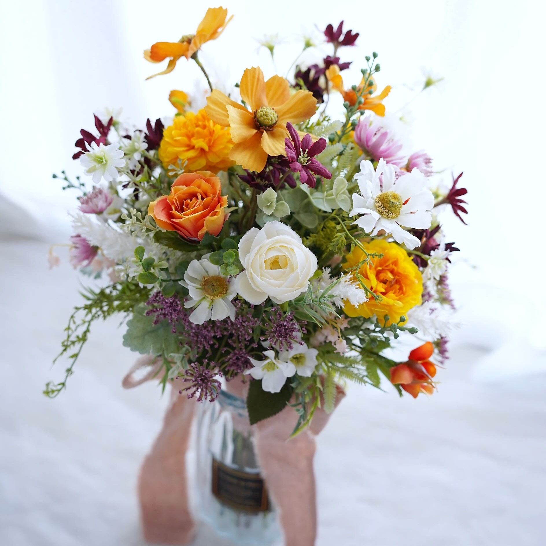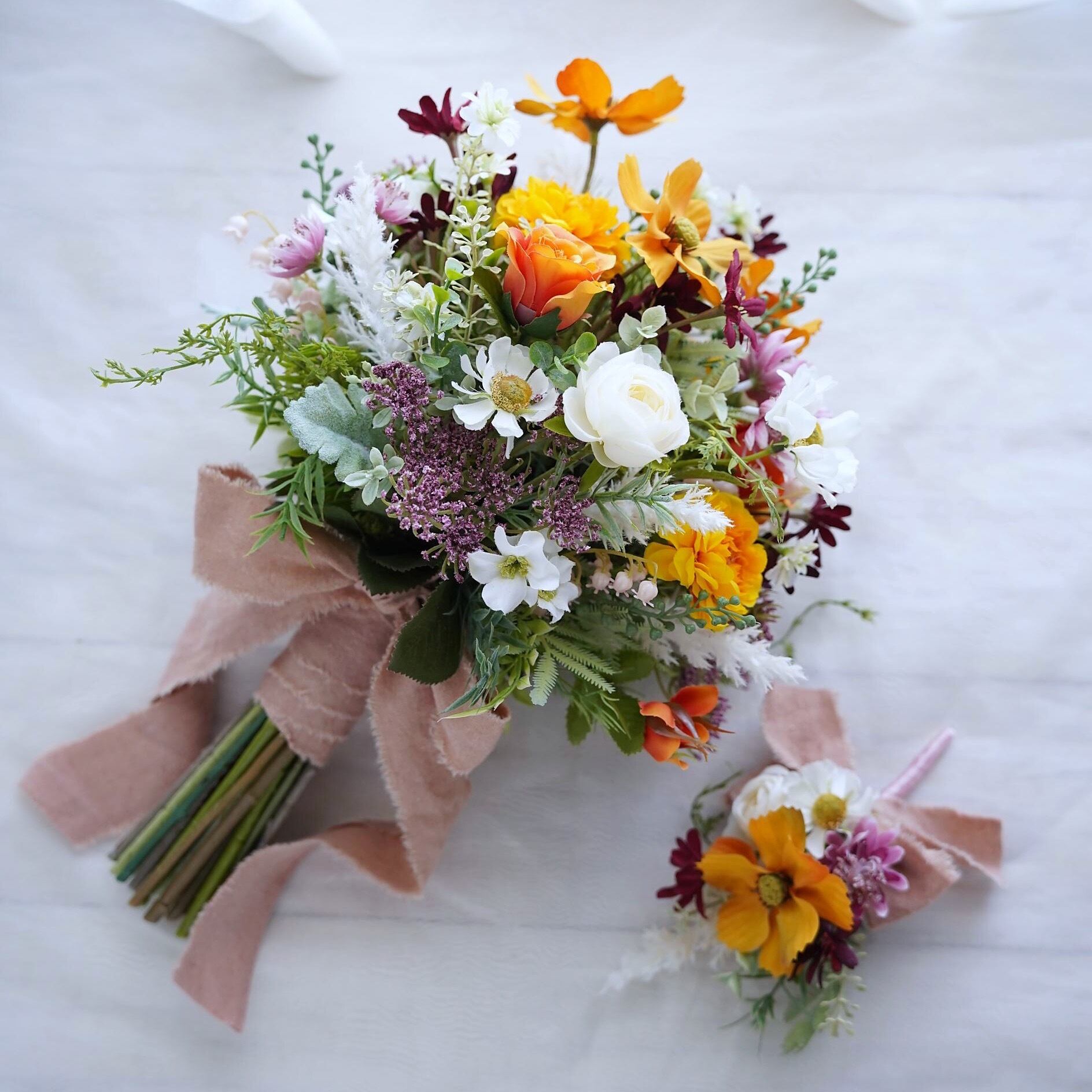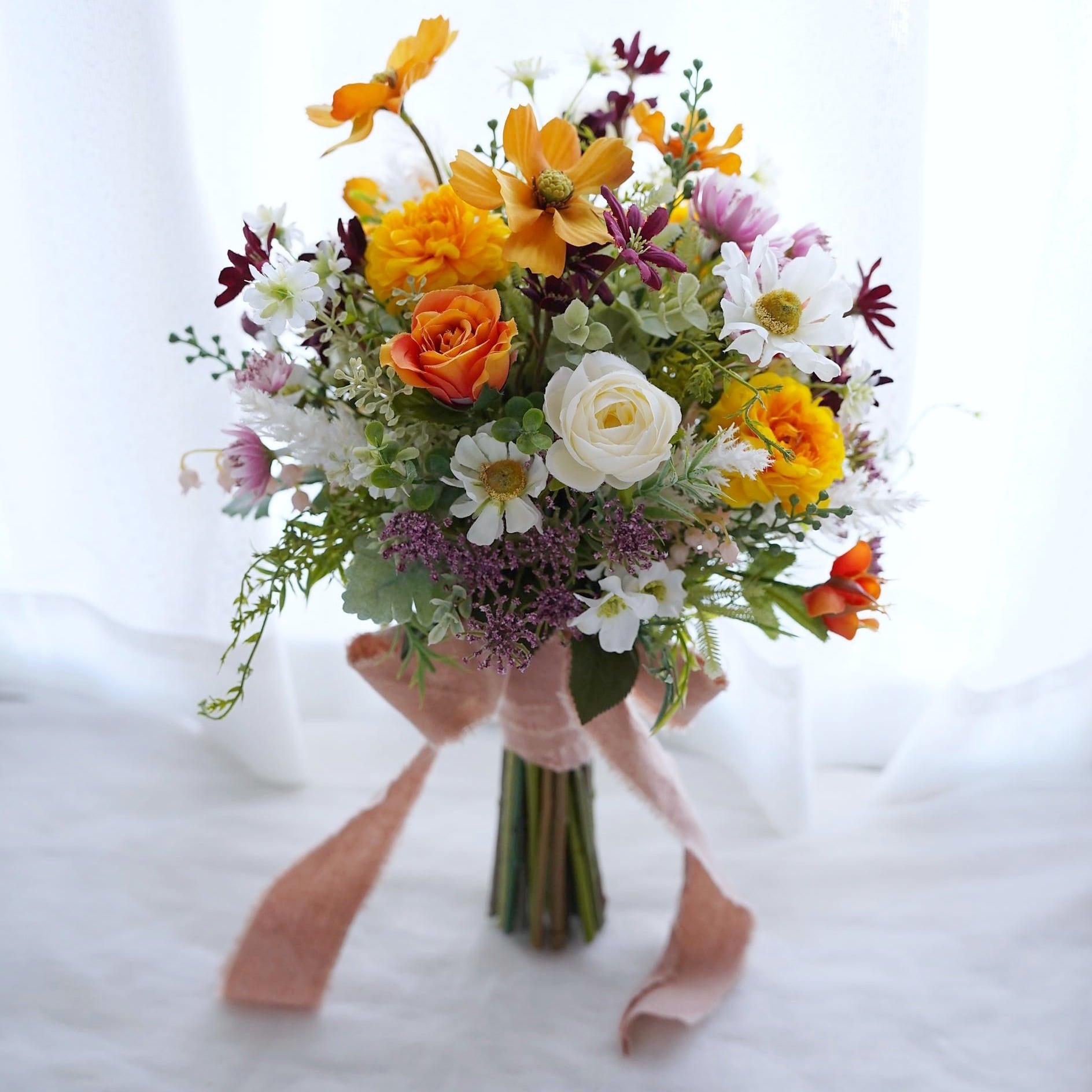 オレンジコスモスと小花のブーケ ウェディングブーケ