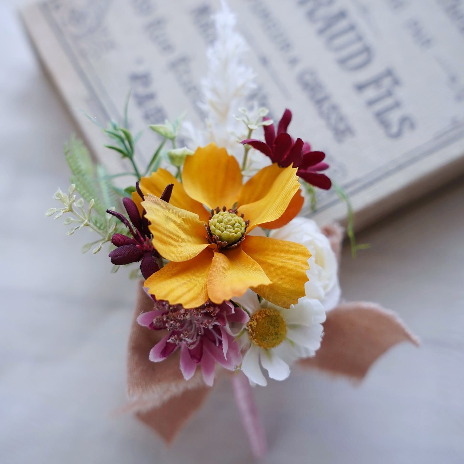 明るいお色目ですが、くすみピンクやバーガンディのお花が入っており、
