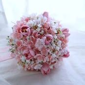 ピンク色に白を合わせたとても可愛らしいお色目のブーケです。