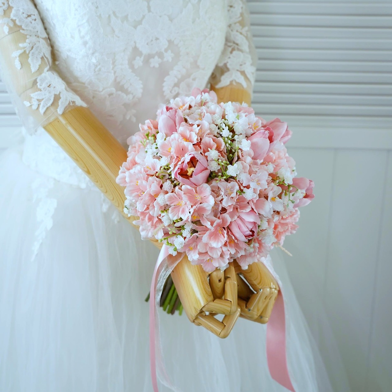 高品質のアーティフィシャルフラワーで束ねたウェディングブーケです。