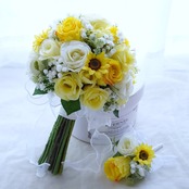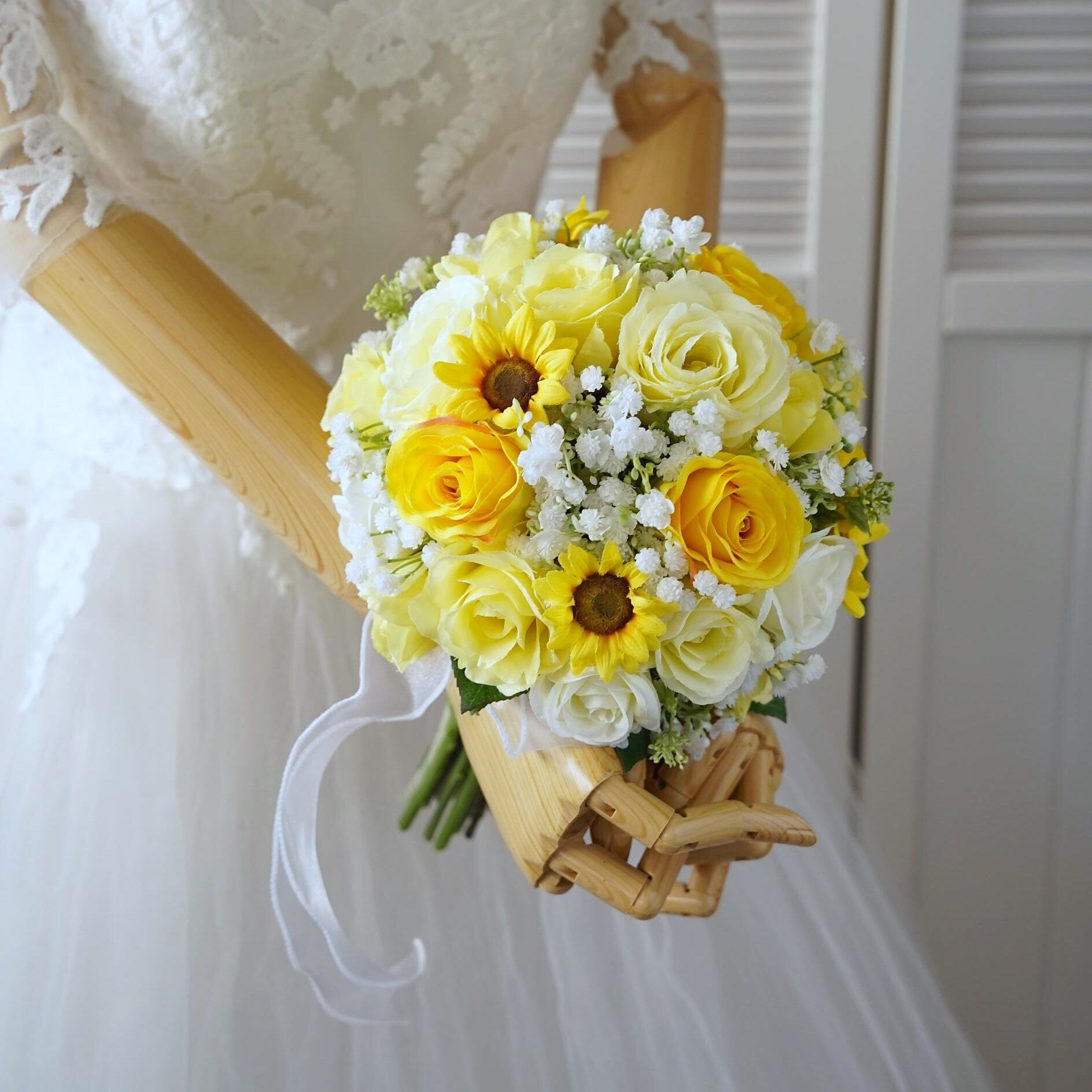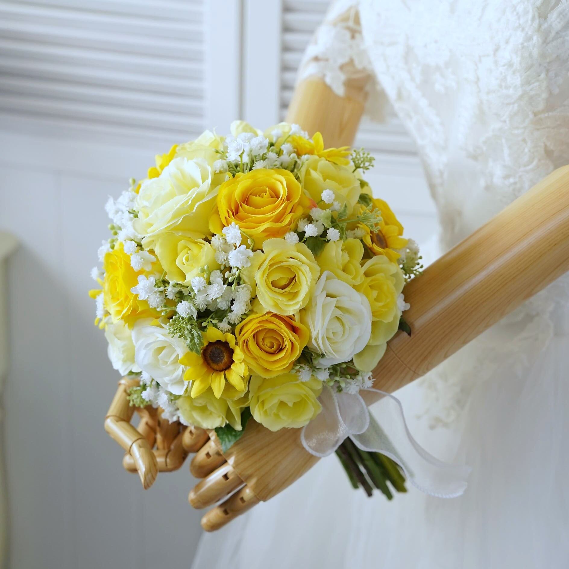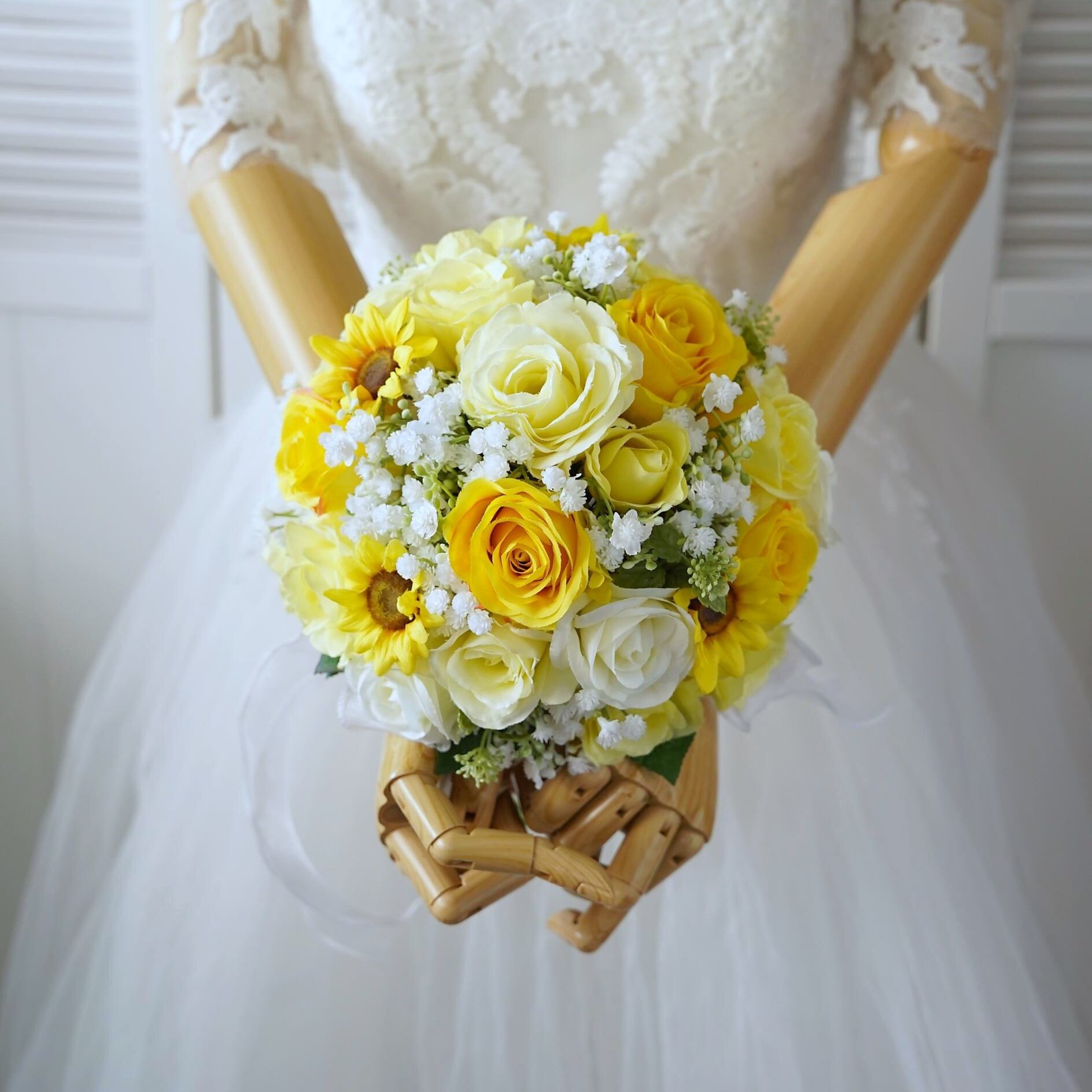 ローズとひまわりのラウンドブーケ ウェディングブーケ