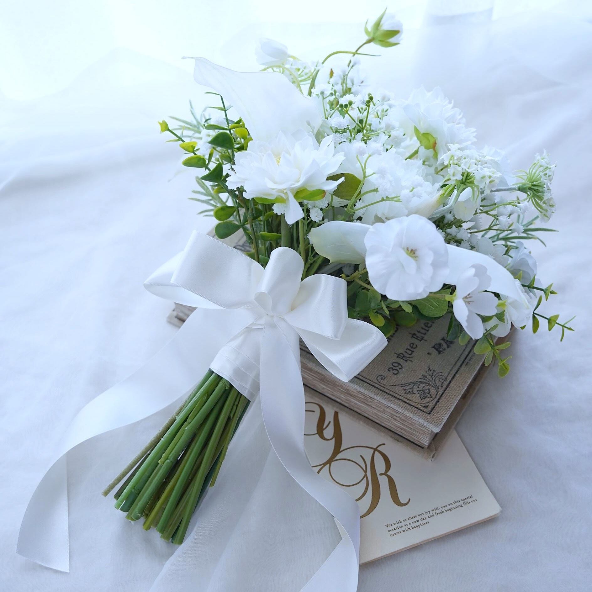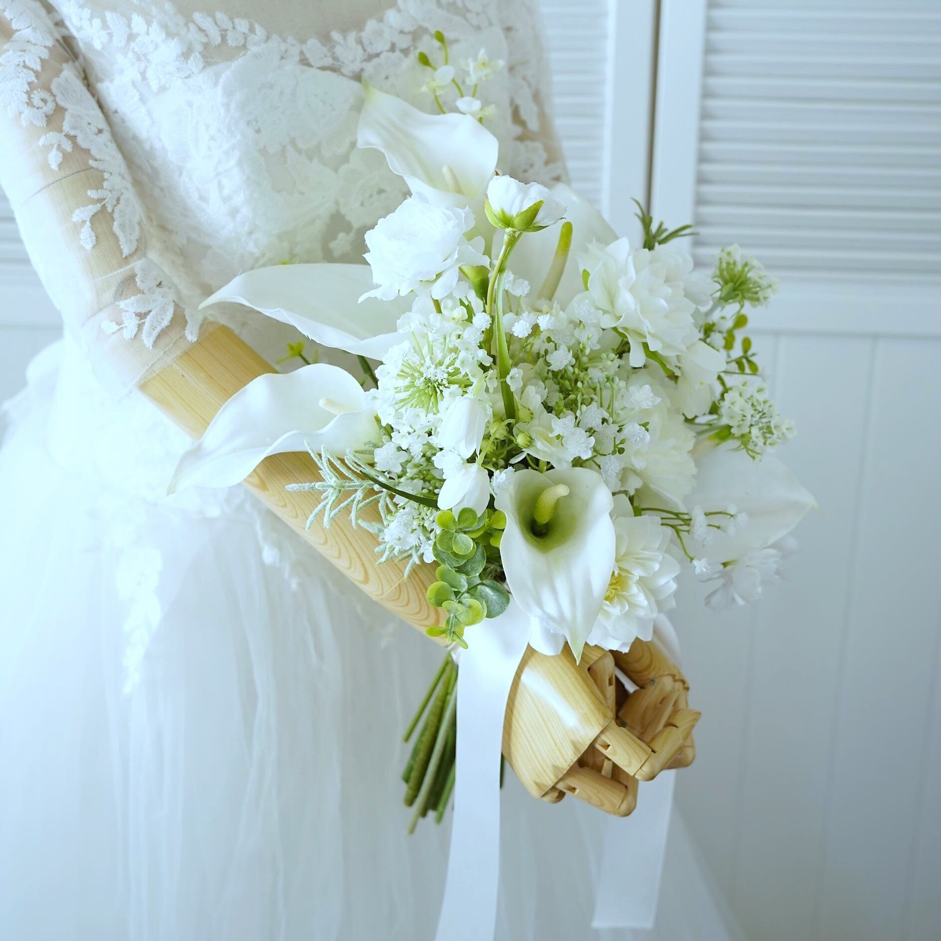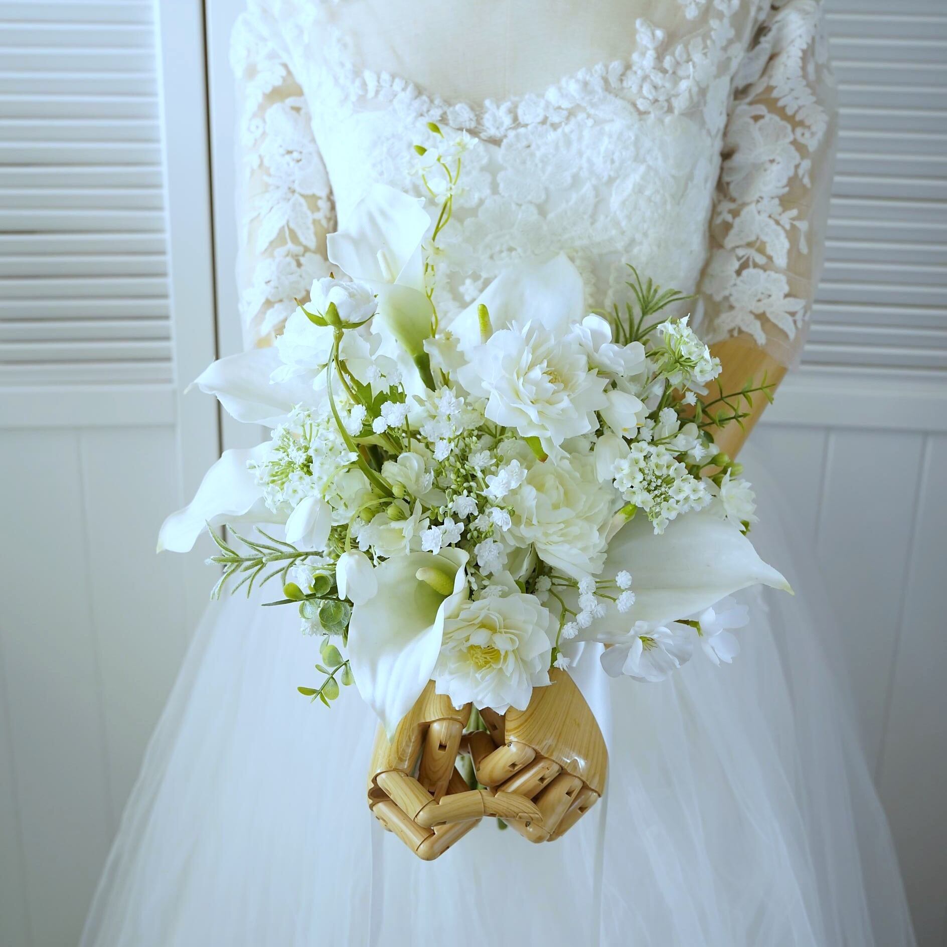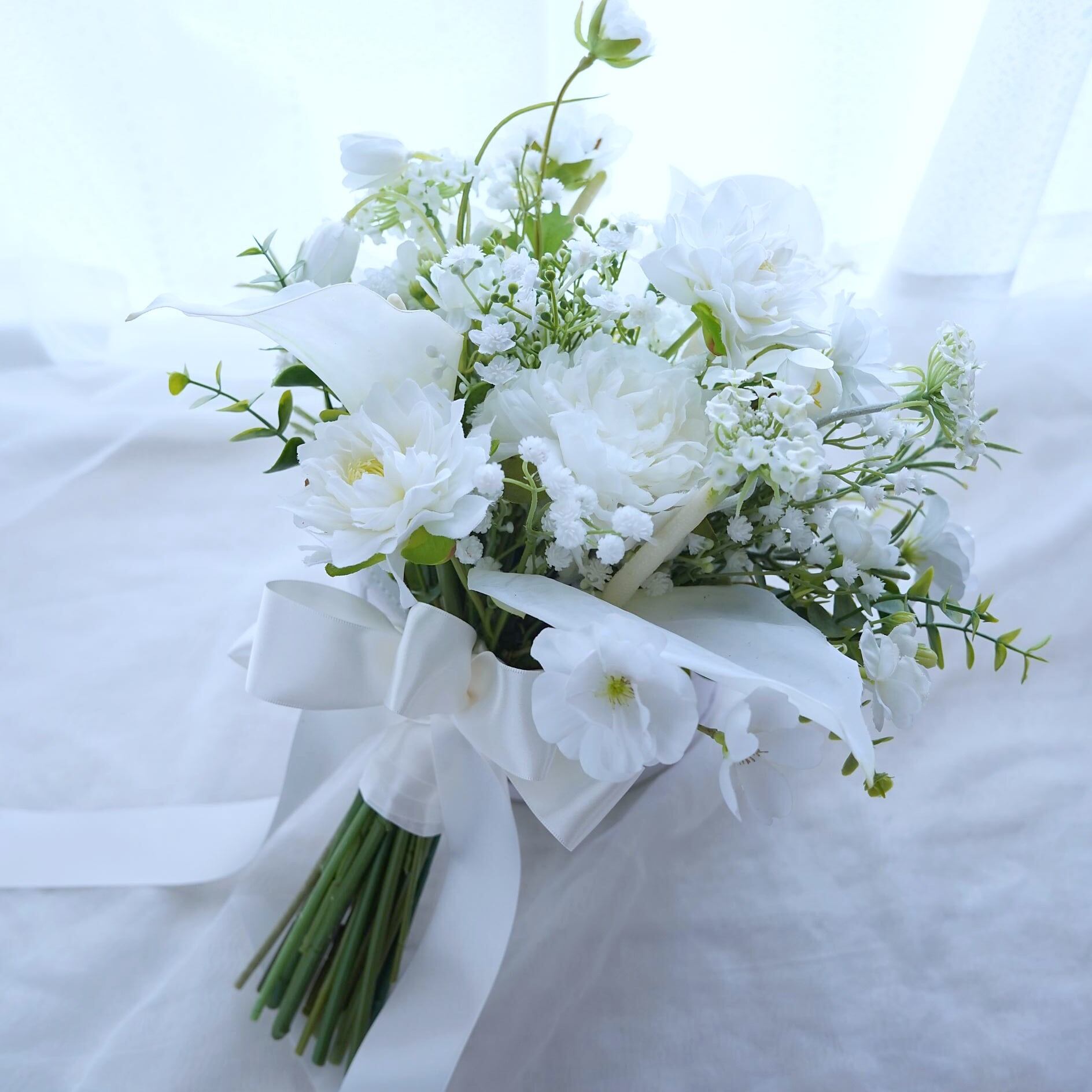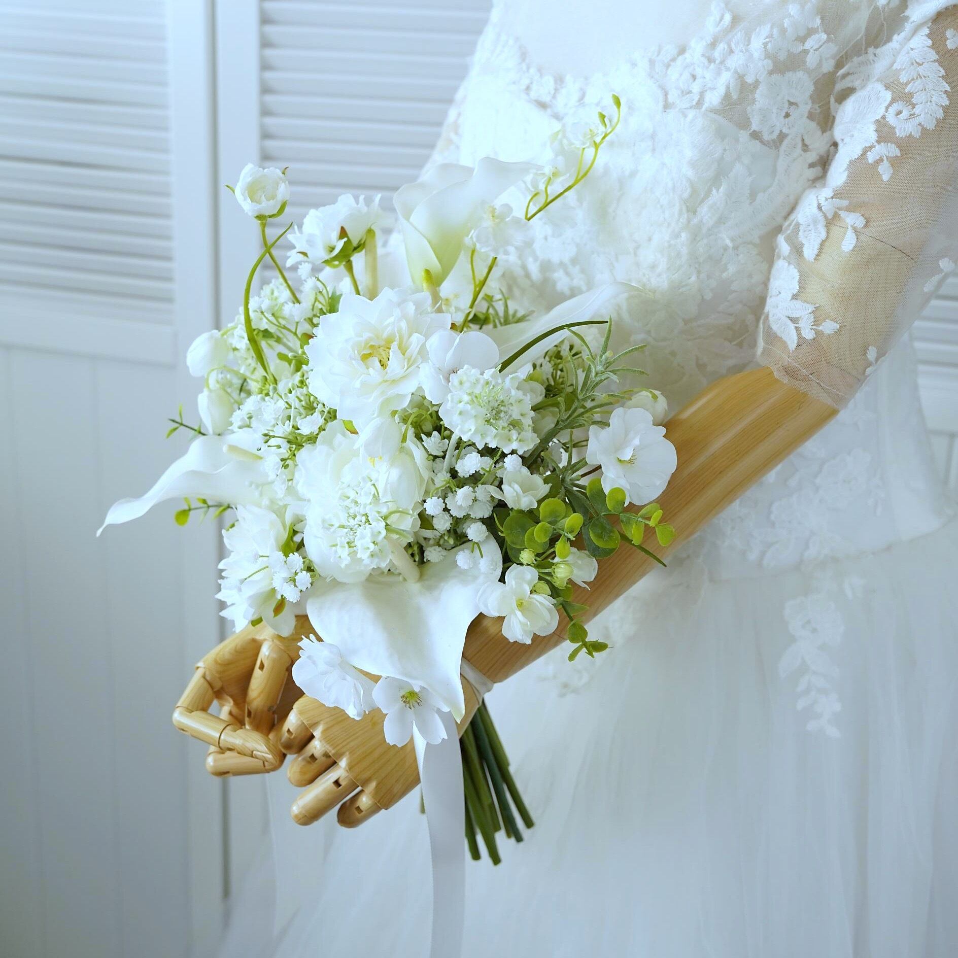 高品質のアーティフィシャルフラワーで束ねたウェディングブーケです。